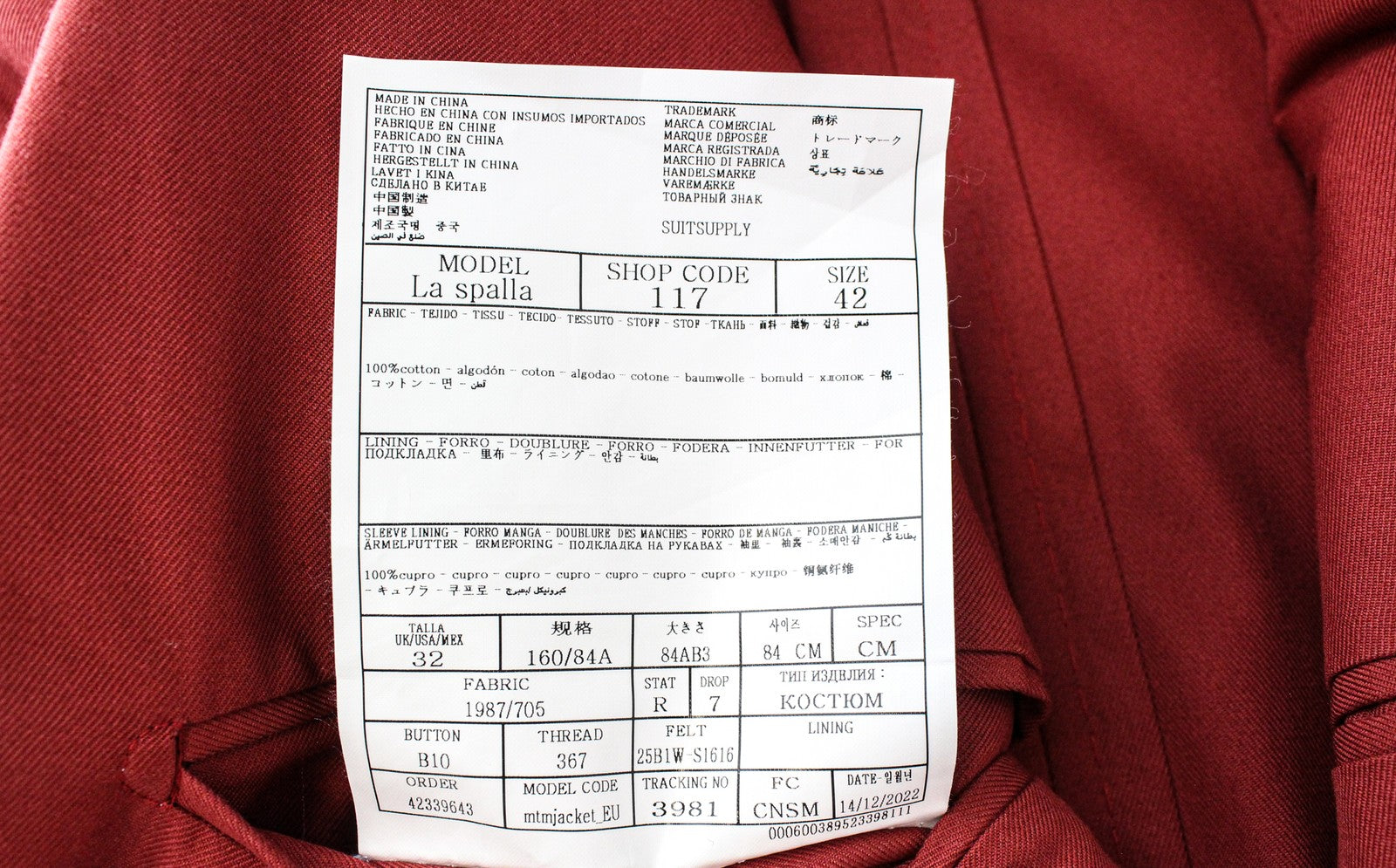 SUITSUPPLY La Spalla Boys Men's Suit UK32R Unlined Cotton Red 2 Piece Double