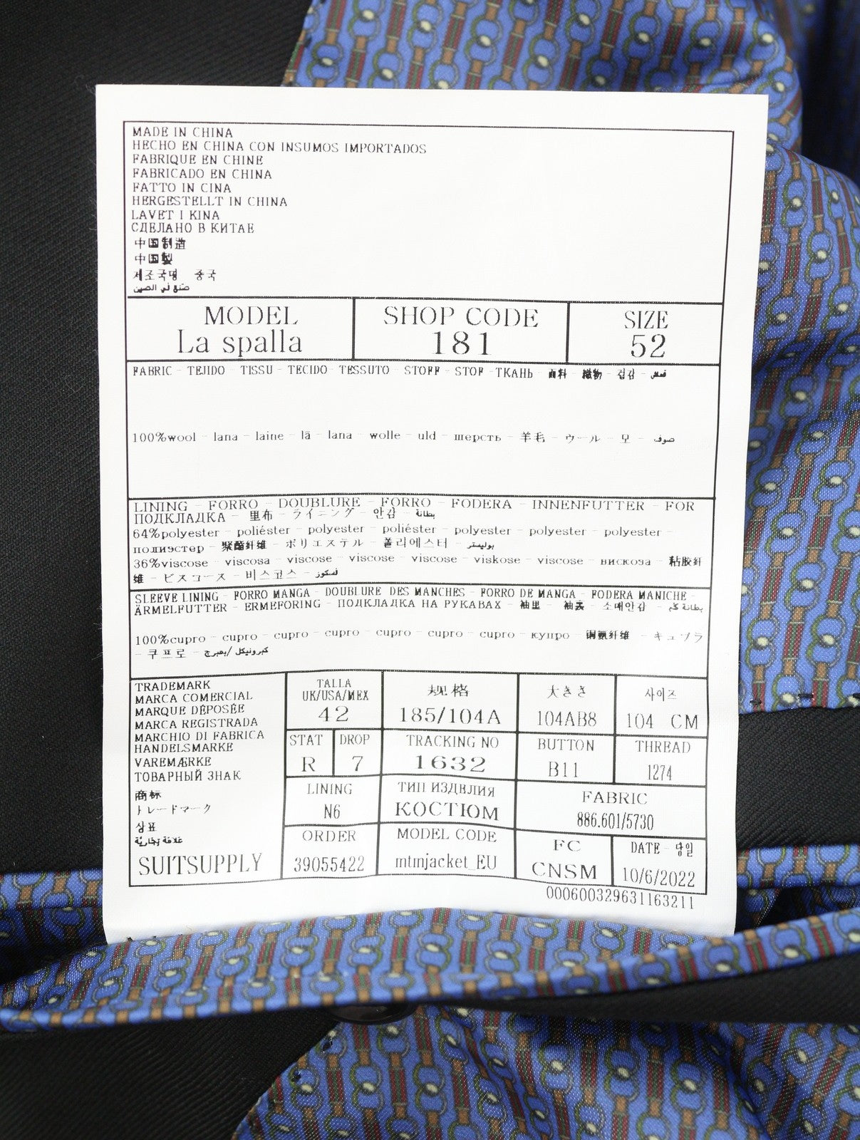 SUITSUPPLY La Spalla Men Suit UK42R / W34 Black Wool Peak Flat Front 2 Pieces