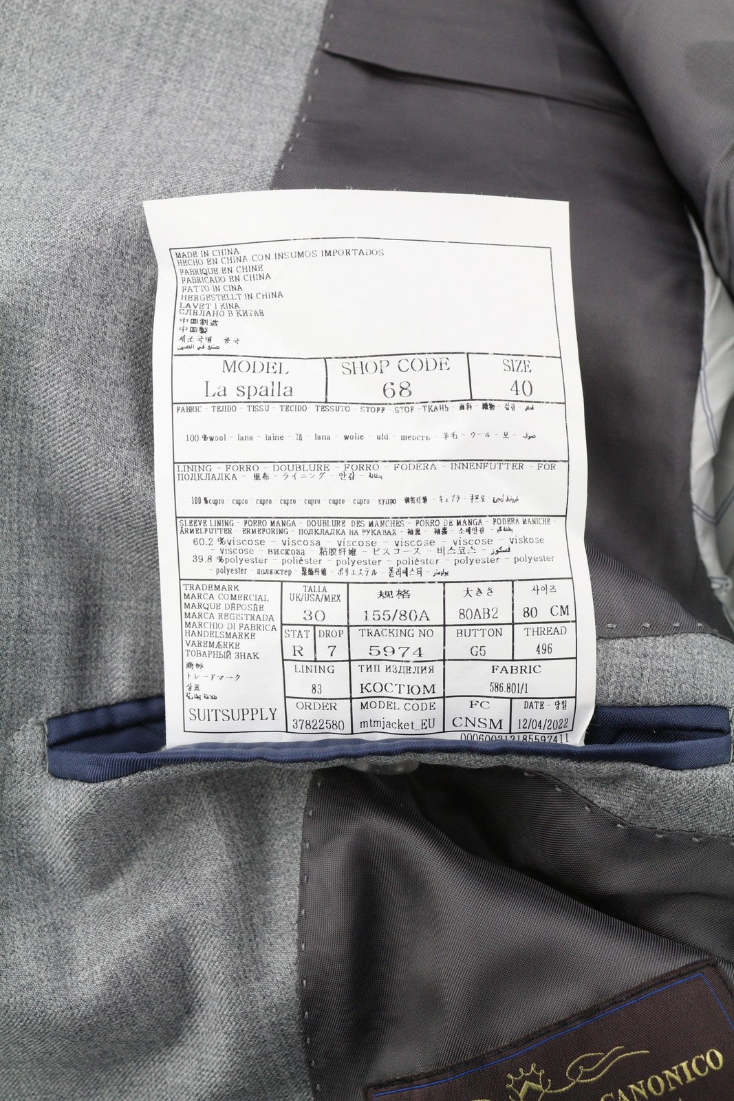 SUITSUPPLY La Spalla Men's Blazer UK30R Grey Wool Double Breasted Peak
