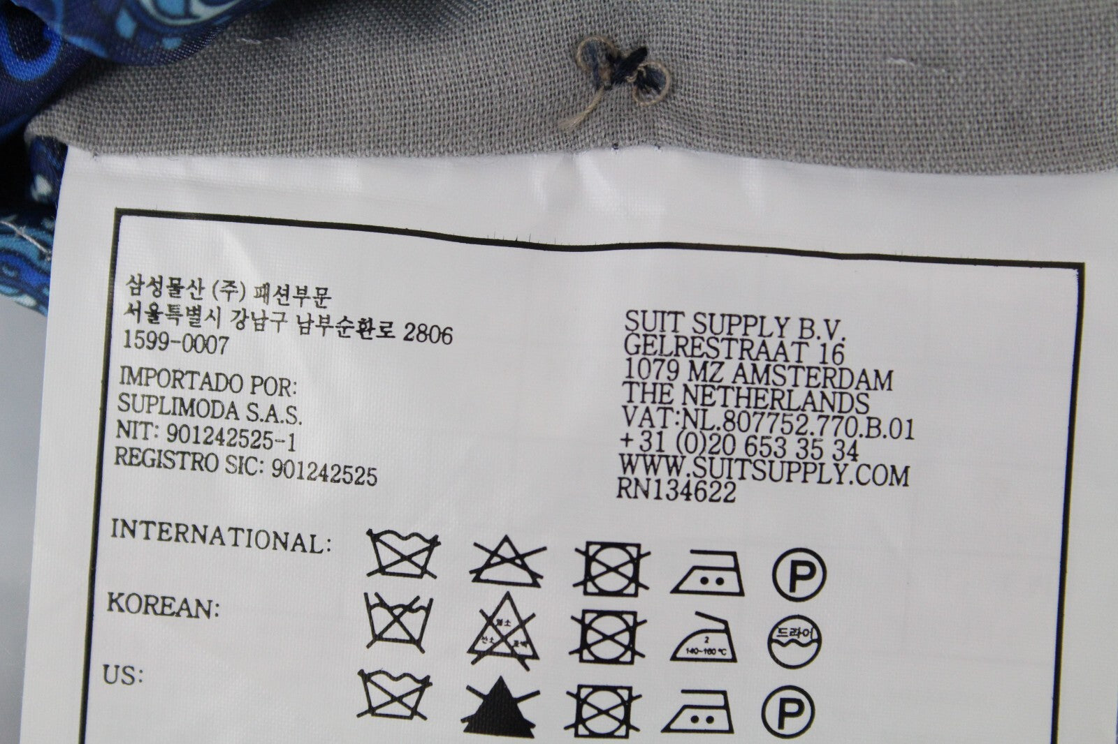 New with defects. Mended sleeve length and hems' and waistline (trousers) lengths. Pay attention to the embroidered initials on the blazer's lining and neck. Please see added photos.