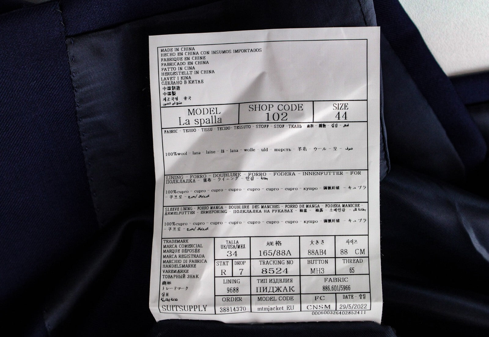 SUITSUPPLY La Spalla Men's Suit UK34R Blue Pure Wool Slim 2-Piece Perennial Fit
