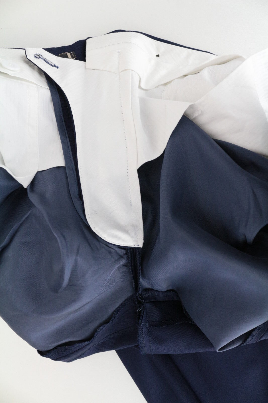 Tiny tears on the blazer's lining. Pulled threads at the back of the blazer. Altered trousers' width around the waist. Please see added photos.