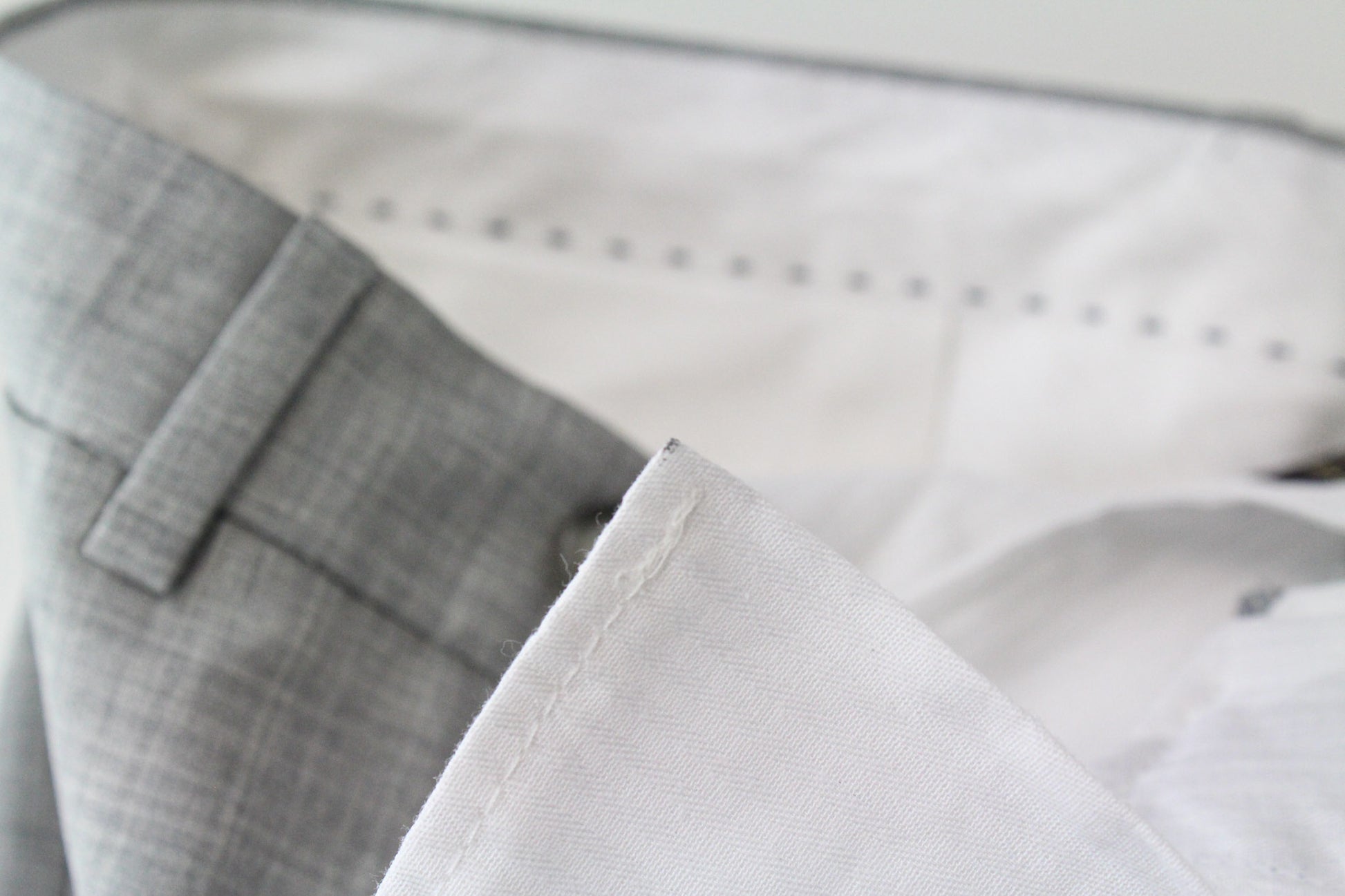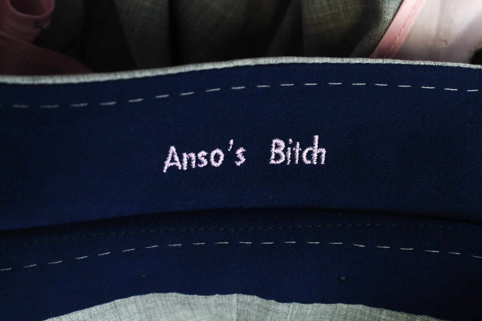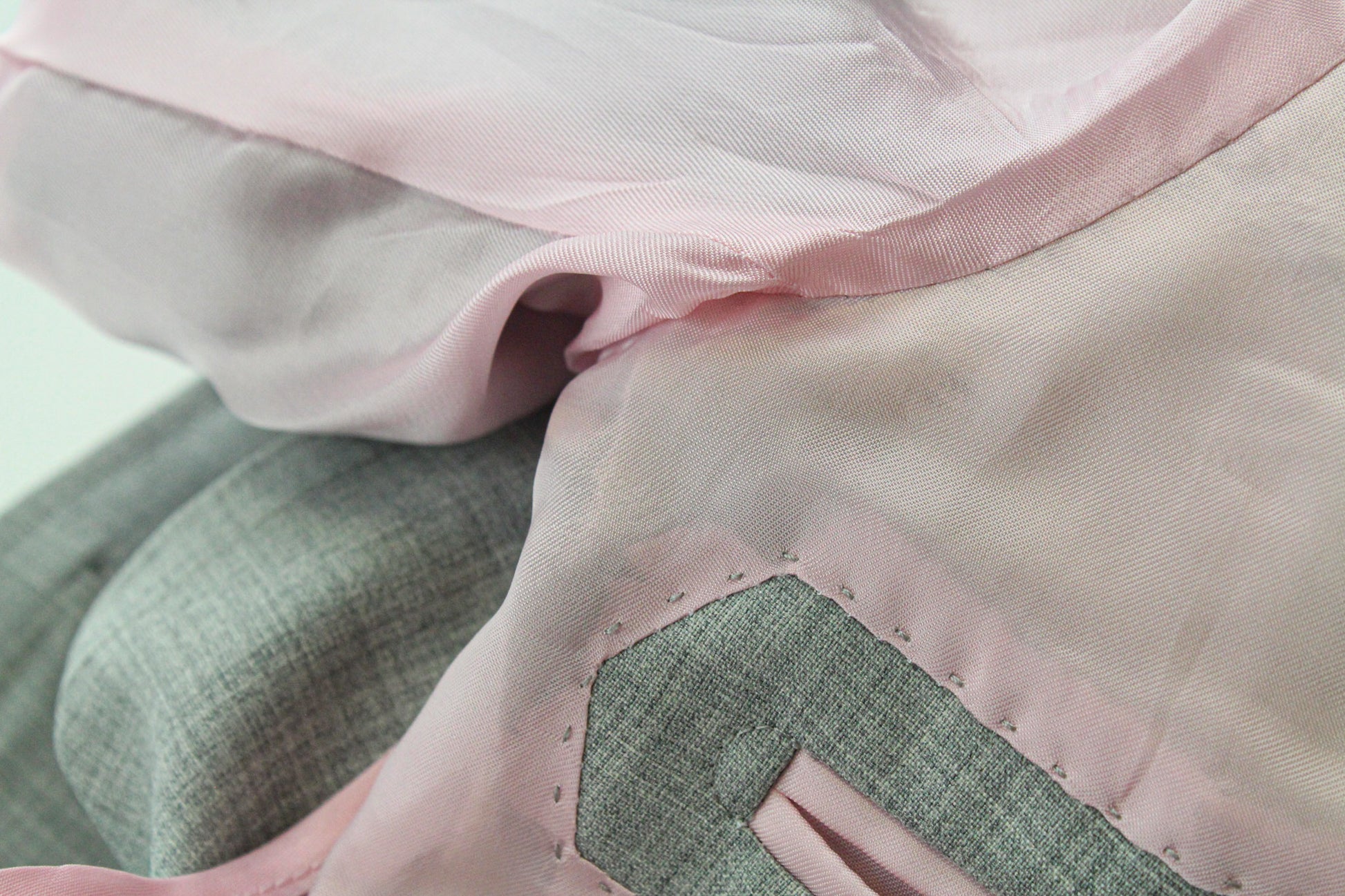 Used. Pay attention to personal embroidery on the blazer. Stained blazer on the lining and trousers' pocket from the inside. Tailored trousers' length and waistline width. Please see added photos.