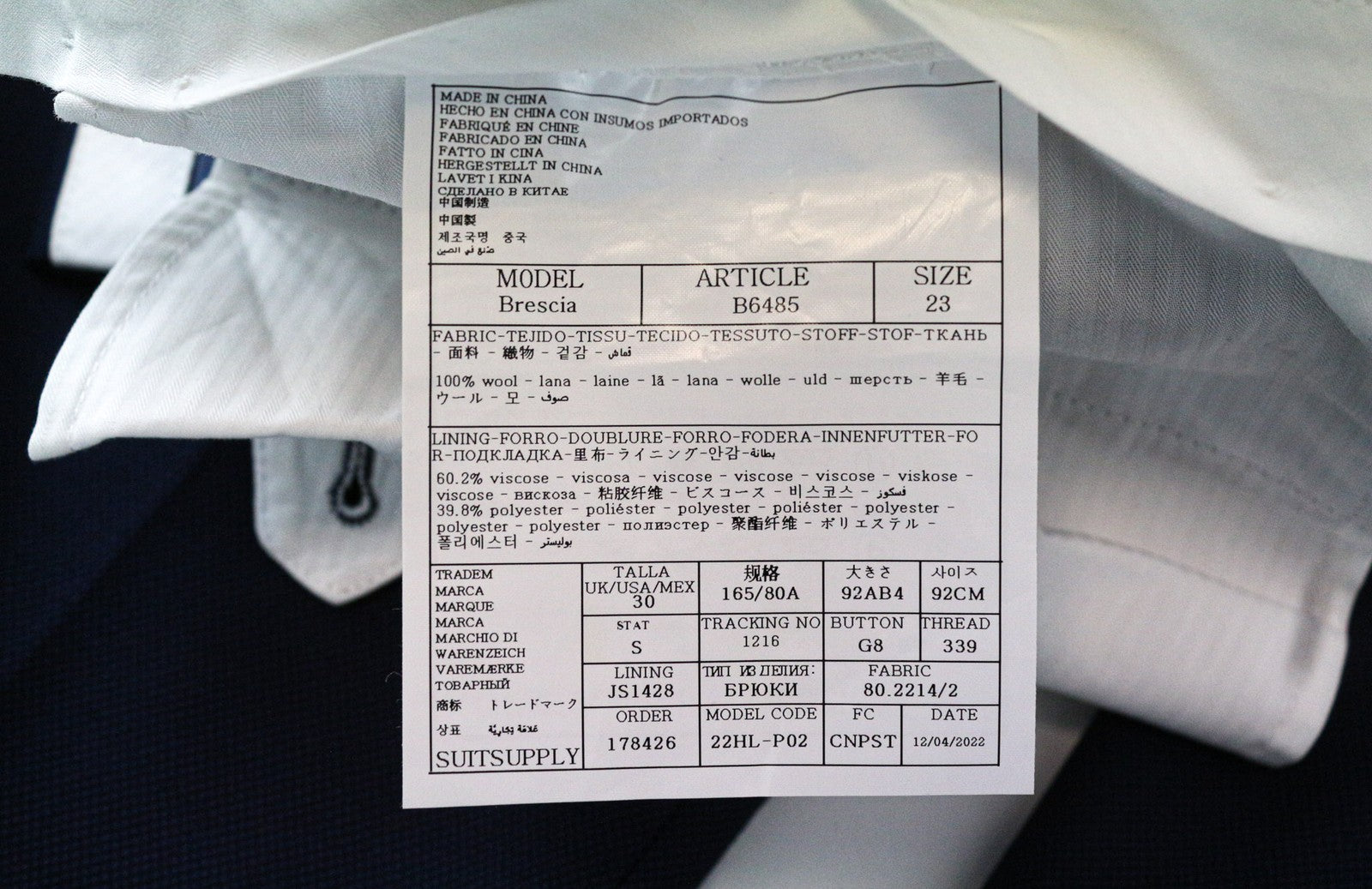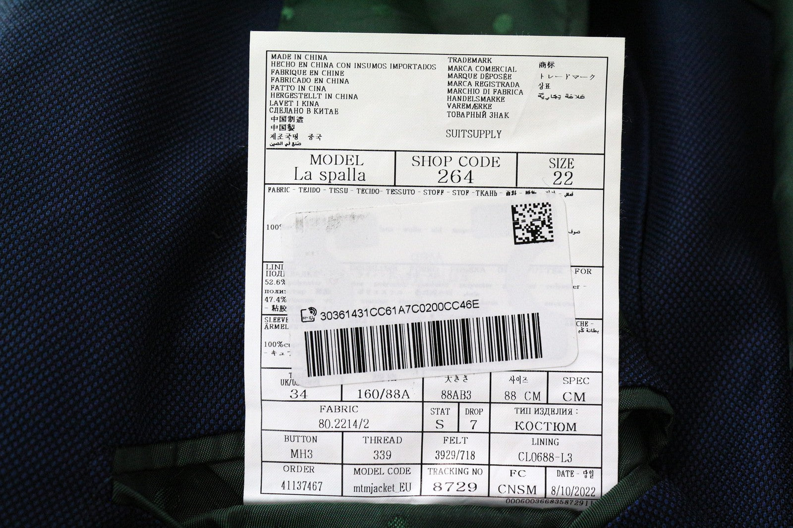 SUITSUPPLY La Spalla Men's Suit UK34S Slim 2Pc Blue Wool Bird's Eye Check S130