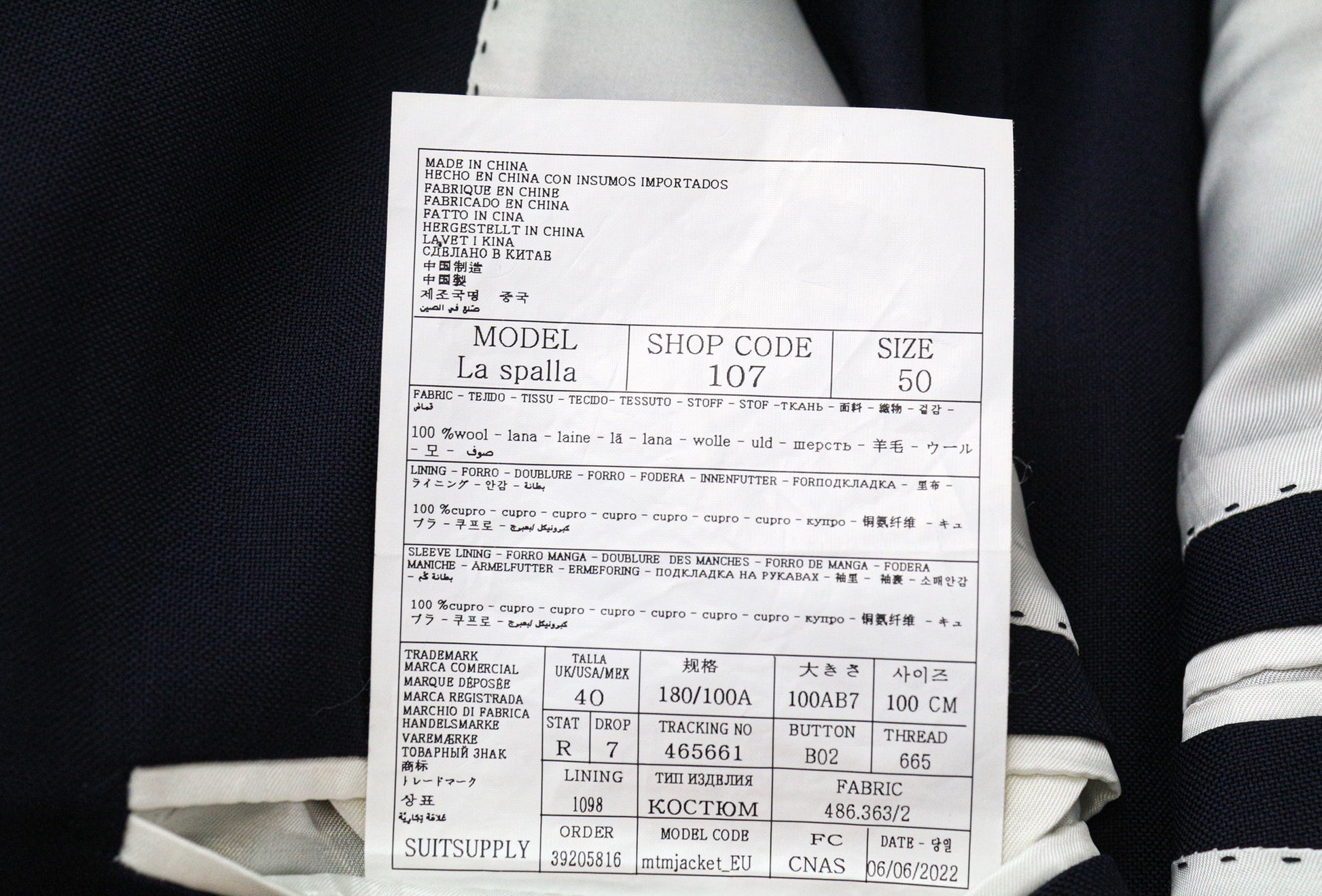 SUITSUPPLY La Spalla Men's Suit UK40R Blue Slim Wool S130s 3-Piece Tuxedo