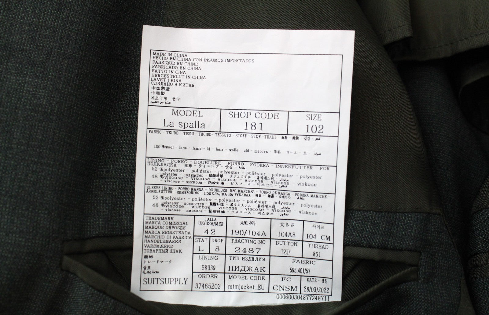 SUITSUPPLY La Spalla Men's Suit UK42L Single-Breast Green Pure Wool Two-Piece