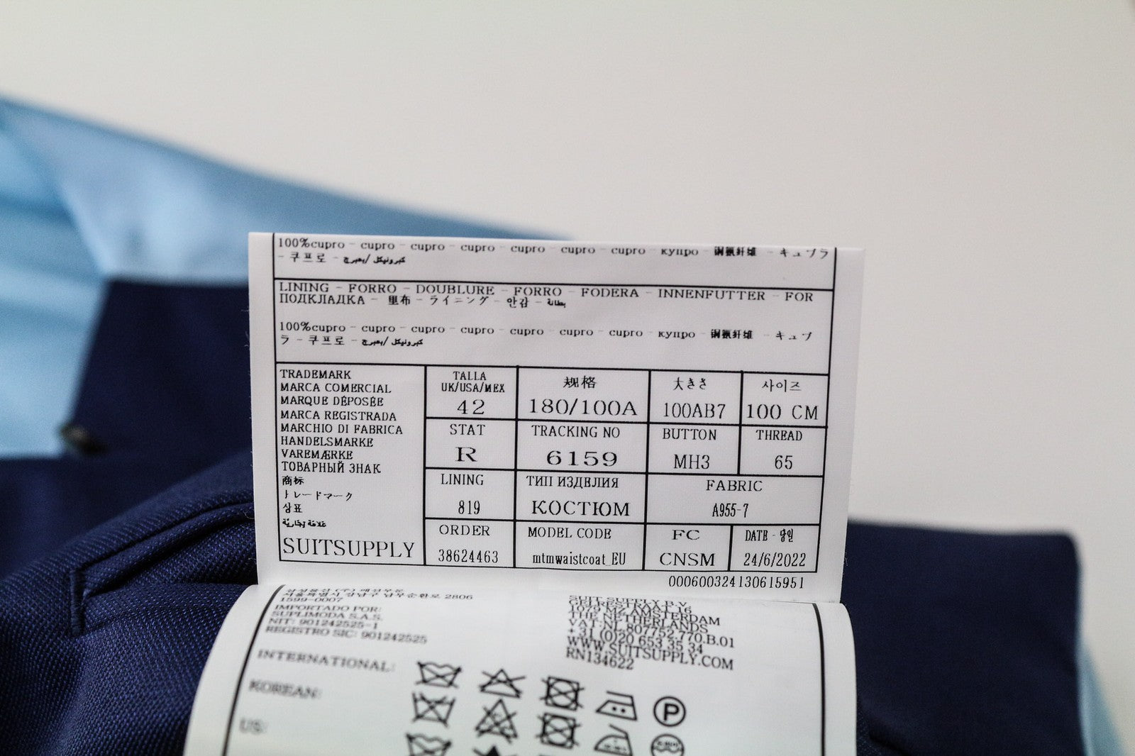 SUITSUPPLY La Spalla Men's Suit UK42R Blue Wool 2Pc Blazer Waistcoat Formal