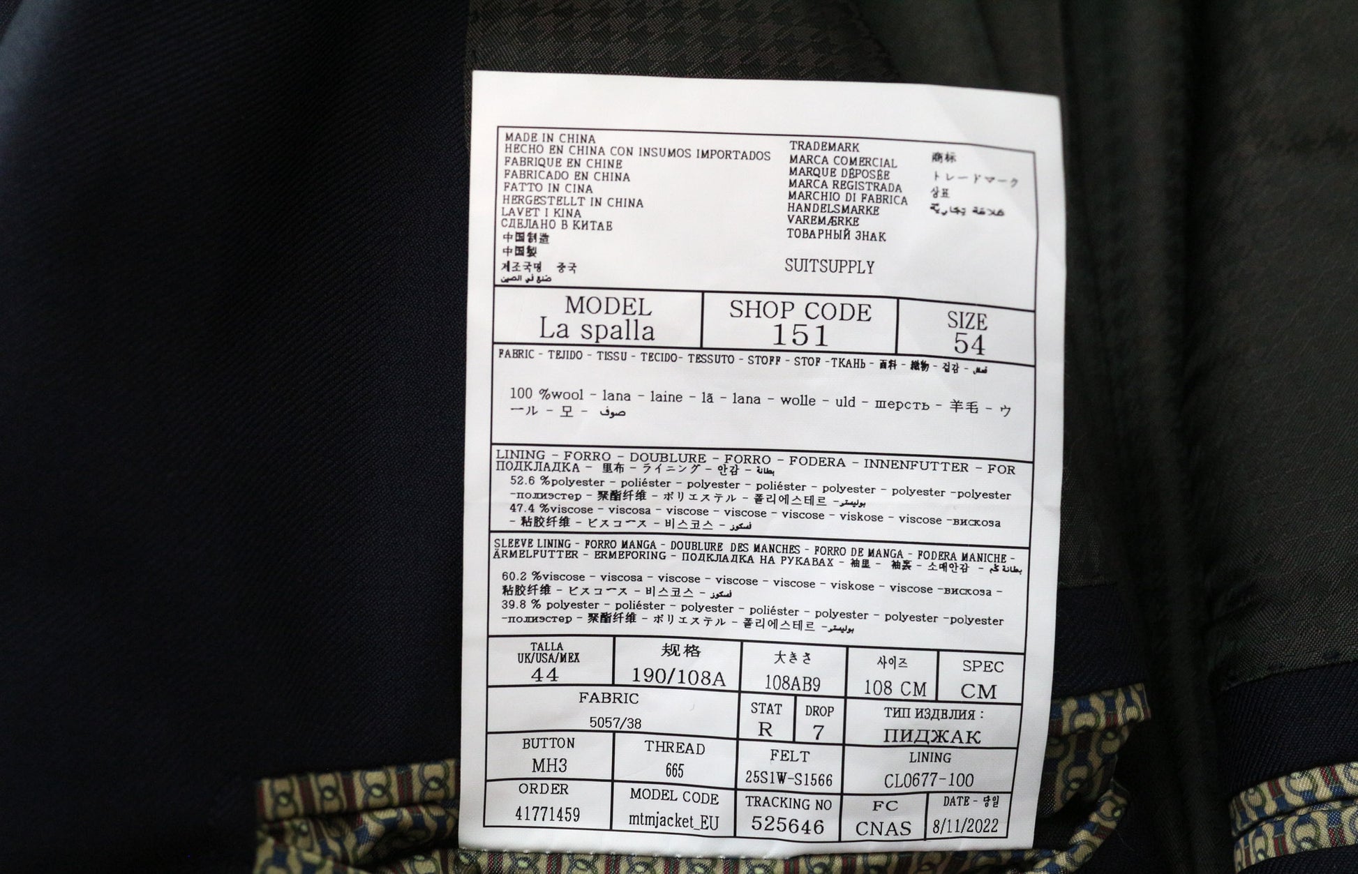 SUITSUPPLY La Spalla Men's Suit UK44R Pure Wool Navy Blue Two Piece Single