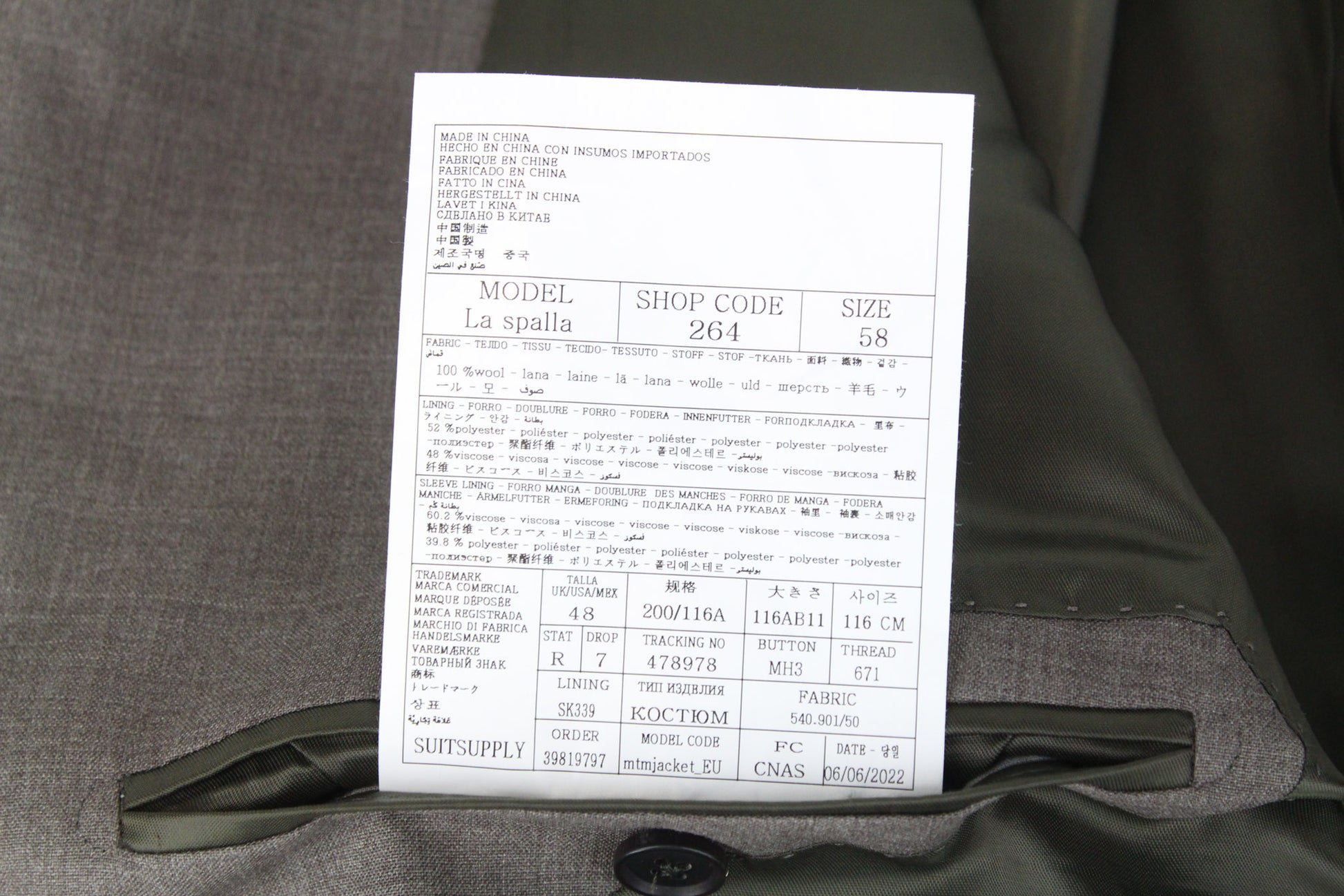 SUITSUPPLY La Spalla Men's Suit UK48R Brown Slim Wool Tropical S120 2Pc Melange