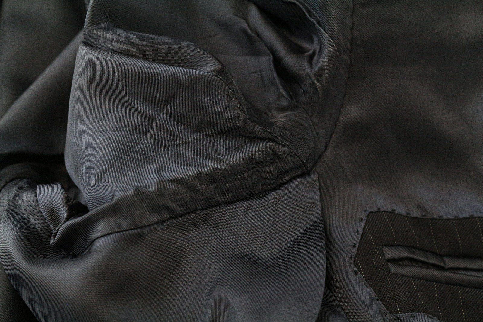 SUITSUPPLY La Spalla vyriškas tamsiai mėlynas vilnonis dryžuotas švarkas, UK36L, raštuotas