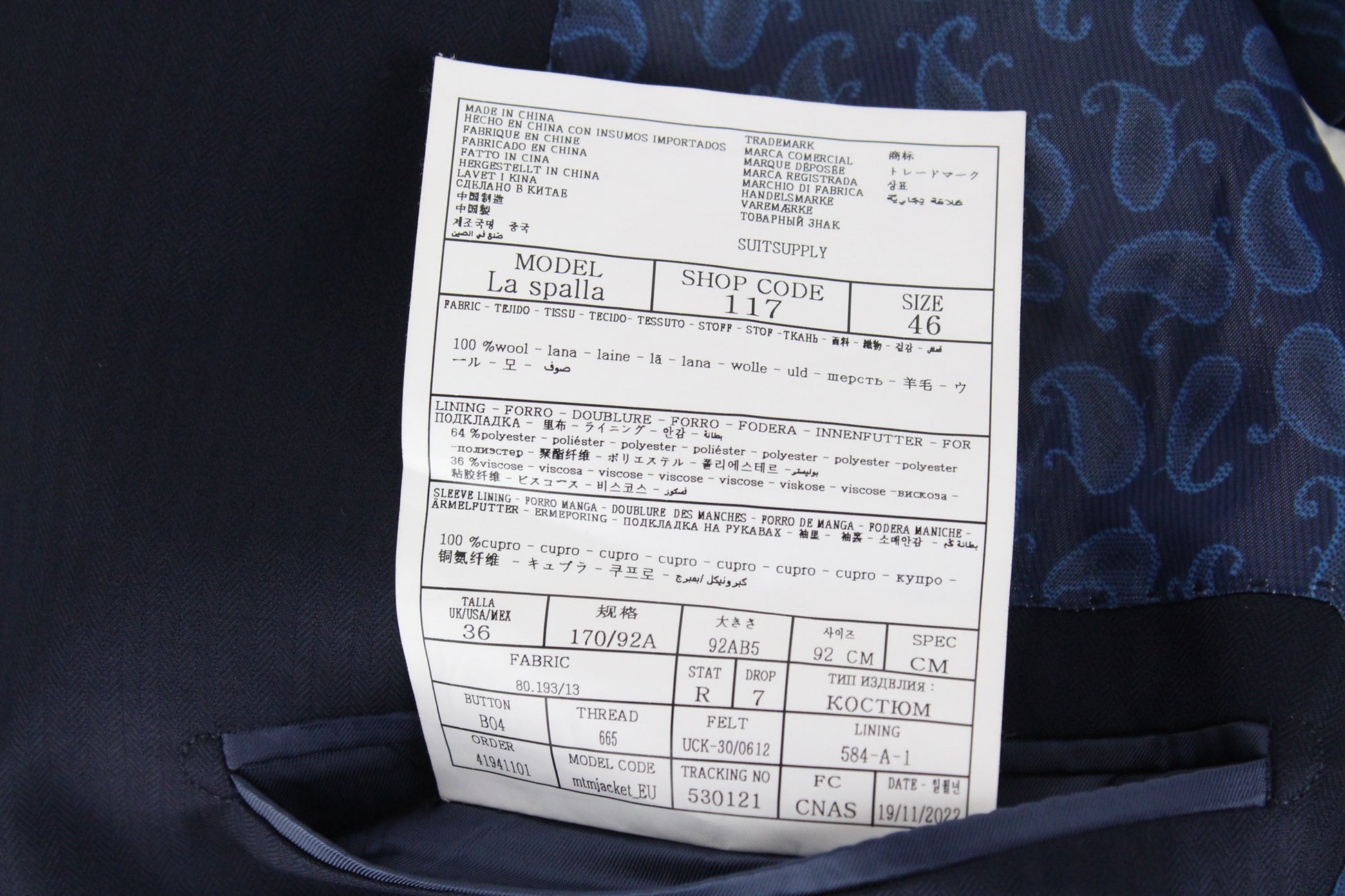 SUITSUPPLY La Spalla Men's UK36R Navy Wool Lined Double-Breasted 3-Piece
