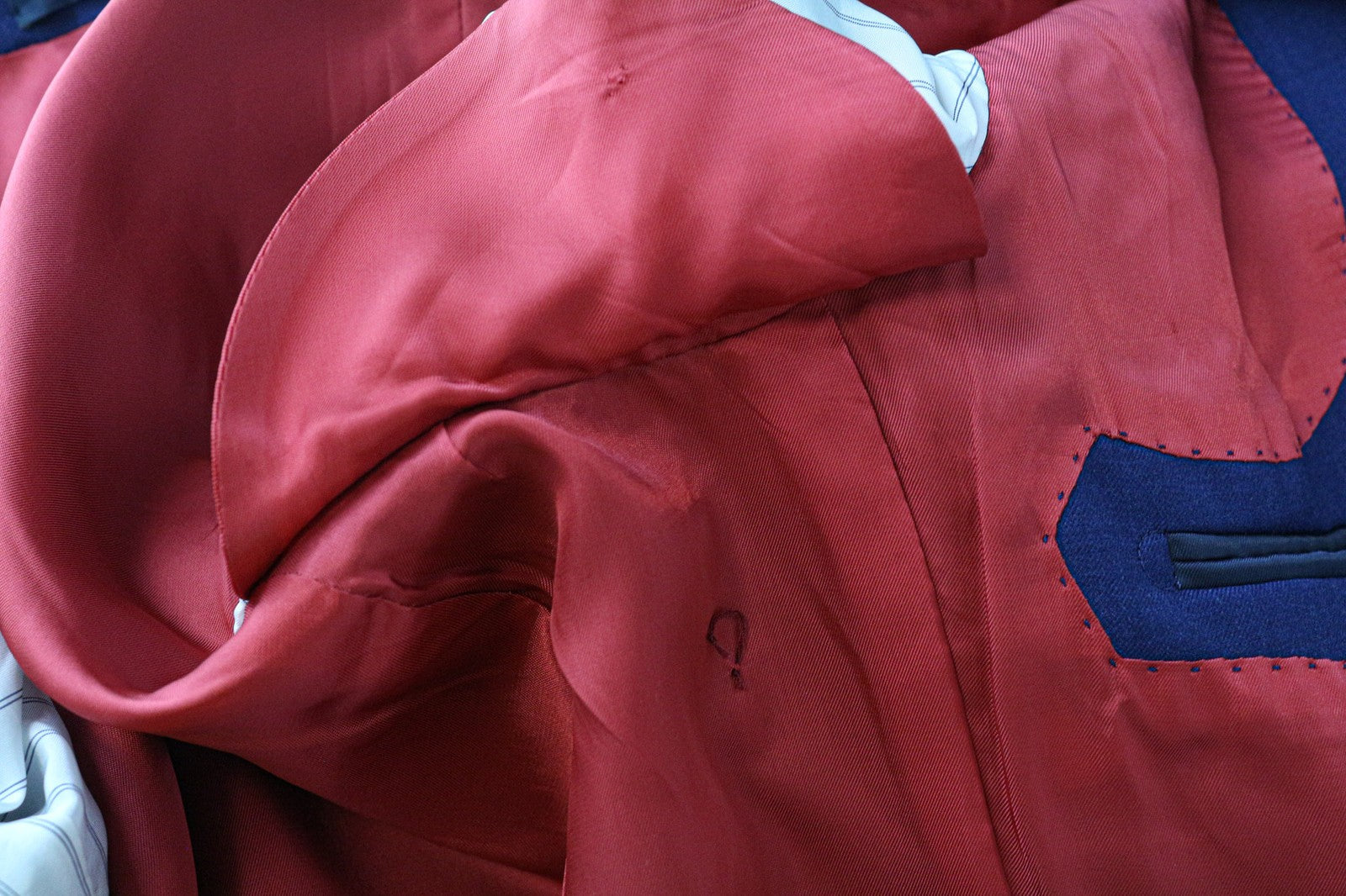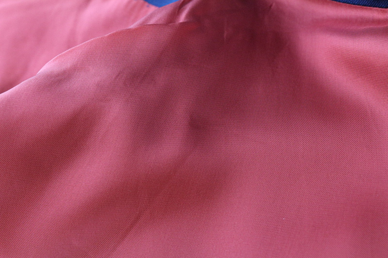 Būklė: Dėmėtas pamušalas ir pažastų sritis vidinėje pusėje. Dėmė kairiojo rankogalio viduje, ištrauktas siūlas ant kairiosios rankovės. Sulopytos rankovės. Ištrauktas siūlas nugaroje. Įplyšimas nugaroje. Atkreipkite dėmesį į asmeninius siuvinėjimus. Žiūrėkite pridėtas nuotraukas.