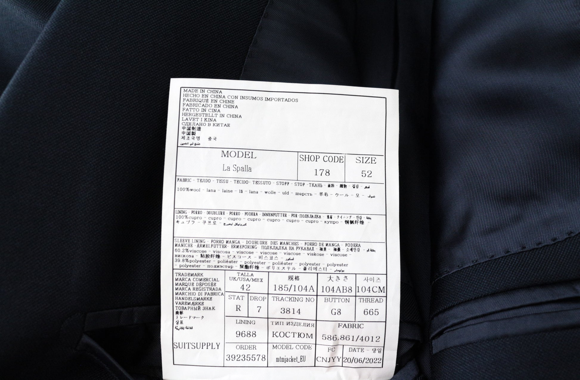 SUITSUPPLY La Spalla Men's UK42R Blue Wool Slim Suit Perennial 2-Piece