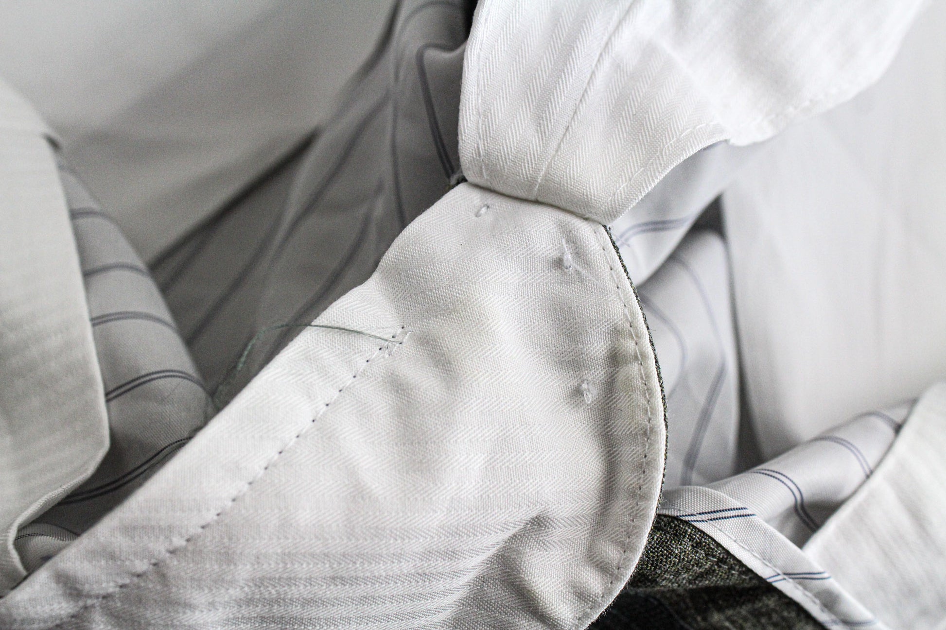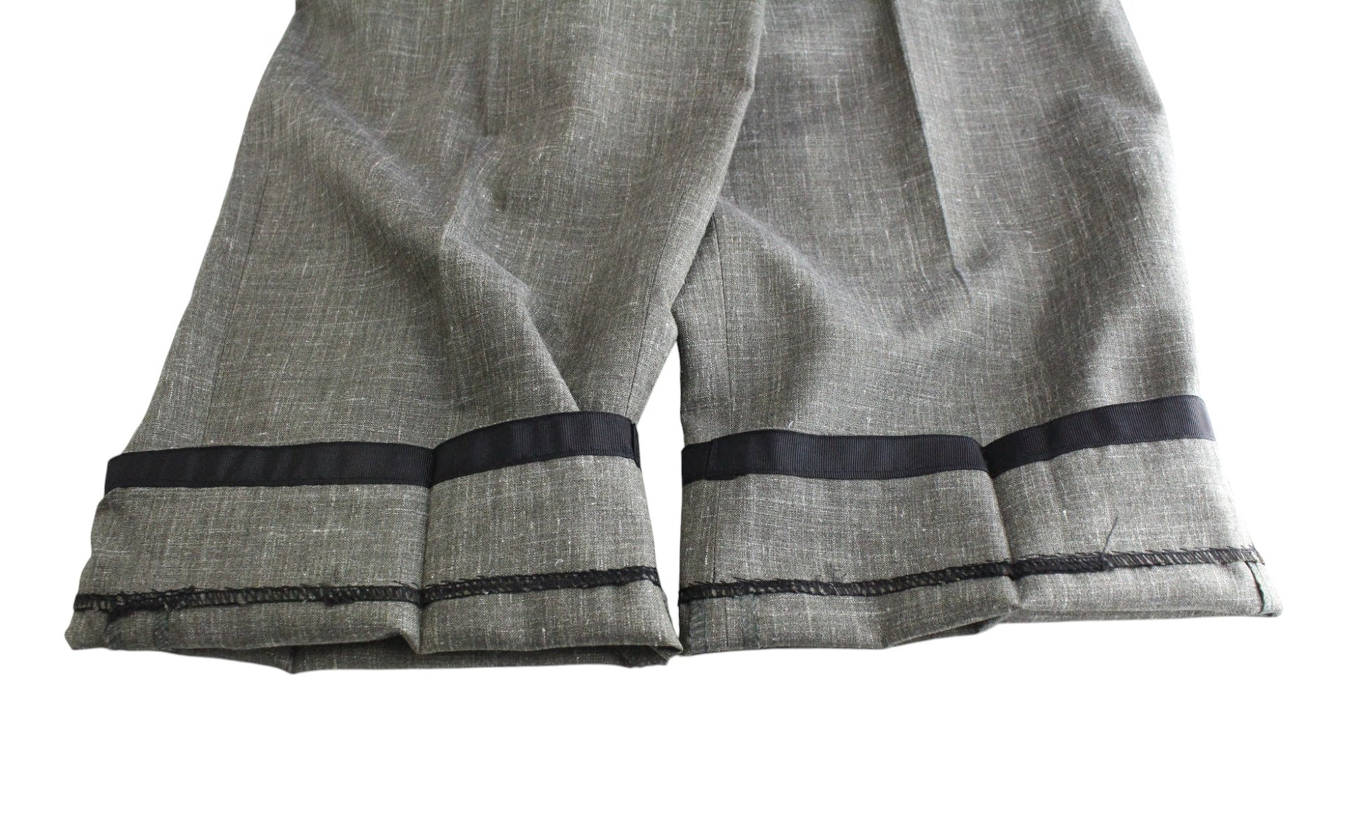 Used. Mended hems, waistline and inner trousers' lining around the crotch area. Stretched seam on the crotch. Stains on the lining and on the front of the trousers. Pay attention to personal embroidery. Please see added photos.
