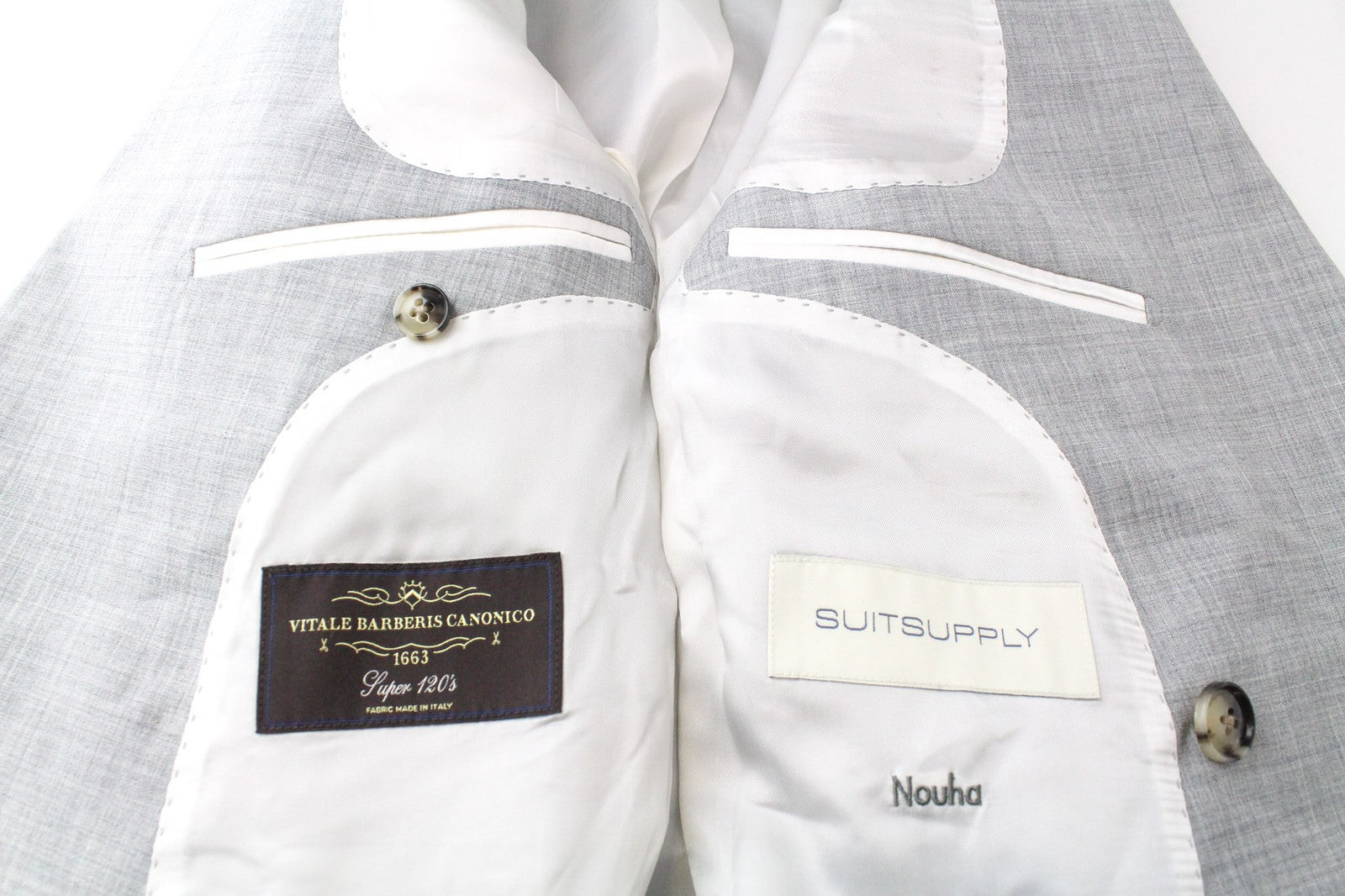 SUITSUPPLY La Spalla Soho Turn Up Men Suit UK34R W30 Grey Melange Wool 2 Piece