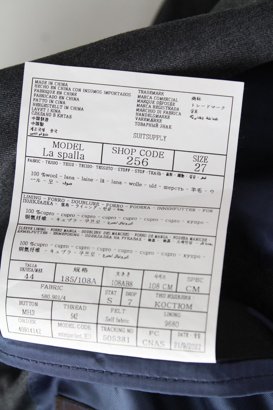SUITSUPPLY La Spalla UK44S Men's Wool Grey Suit 2 Piece Single-Breasted