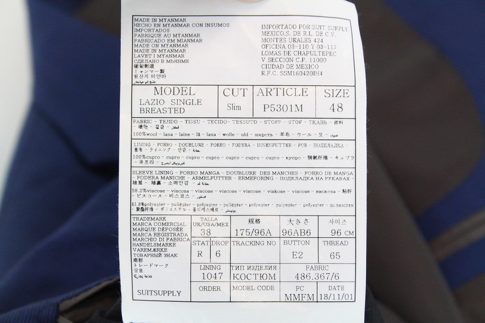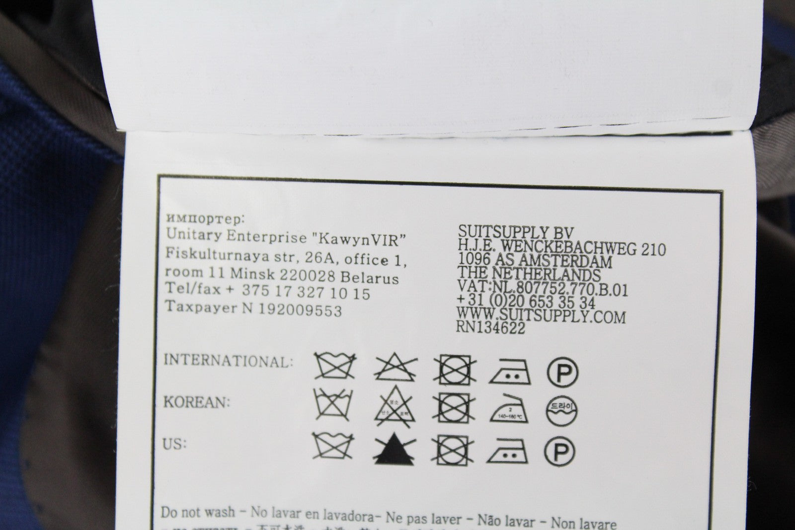 SUITSUPPLY Lazio vyriškas švarkas UK38R super vilnonis plonas mėlynas languotas audinys