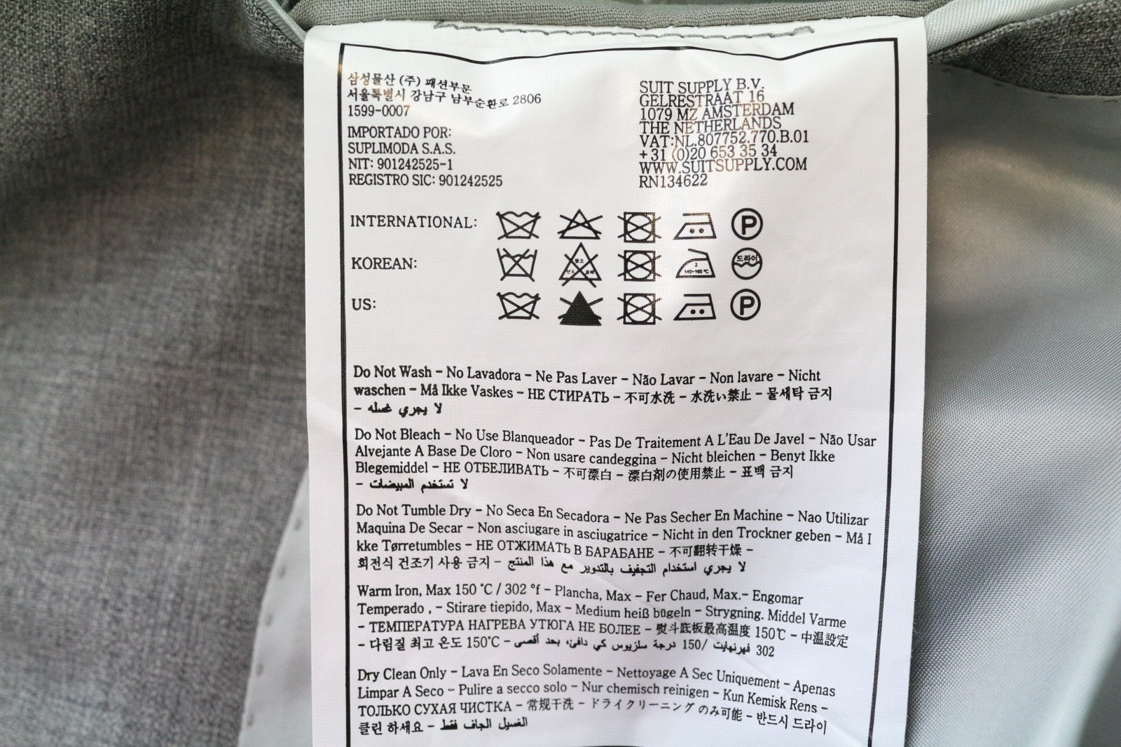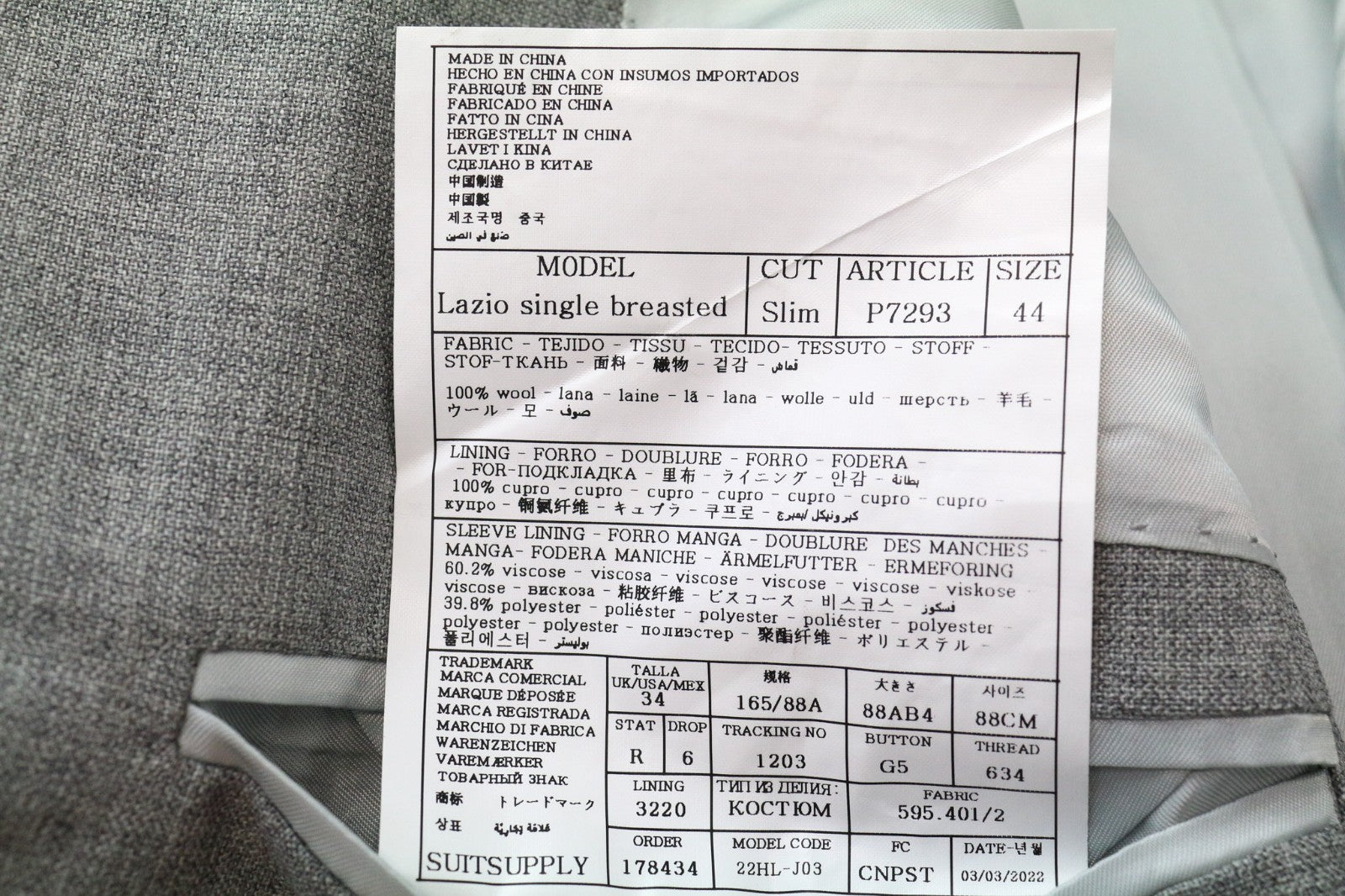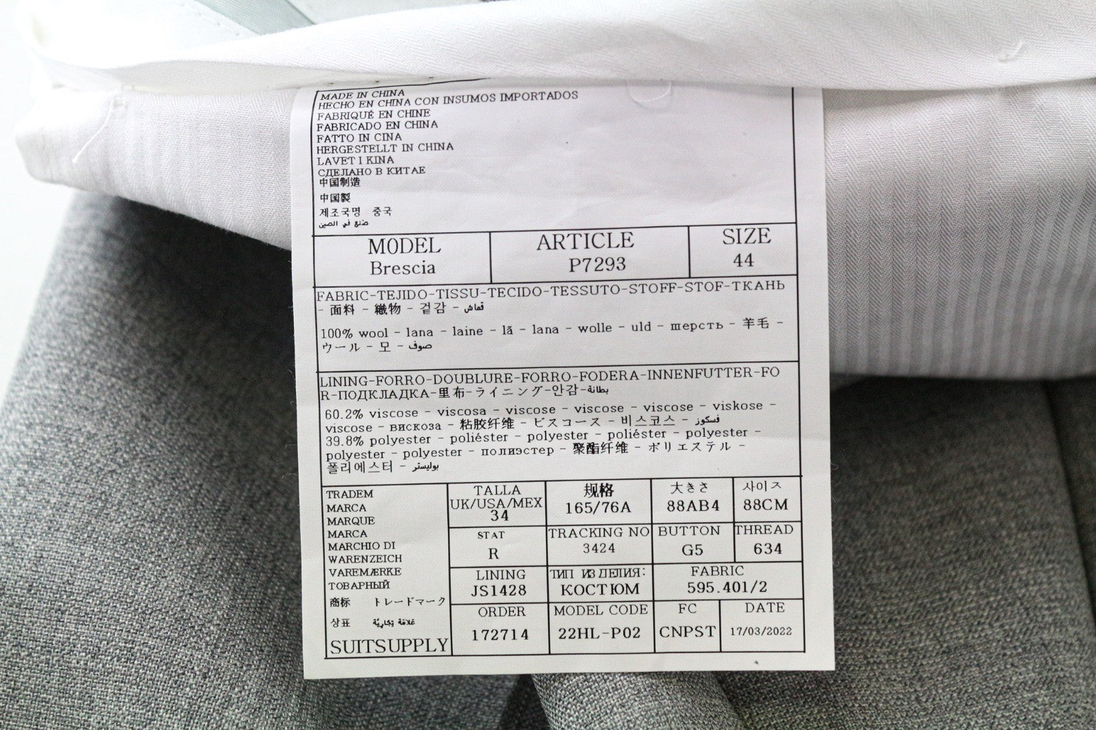 SUITSUPPLY Lazio Men's Suit UK34R Grey Tropical Melange Slim 2Pc Pure Wool