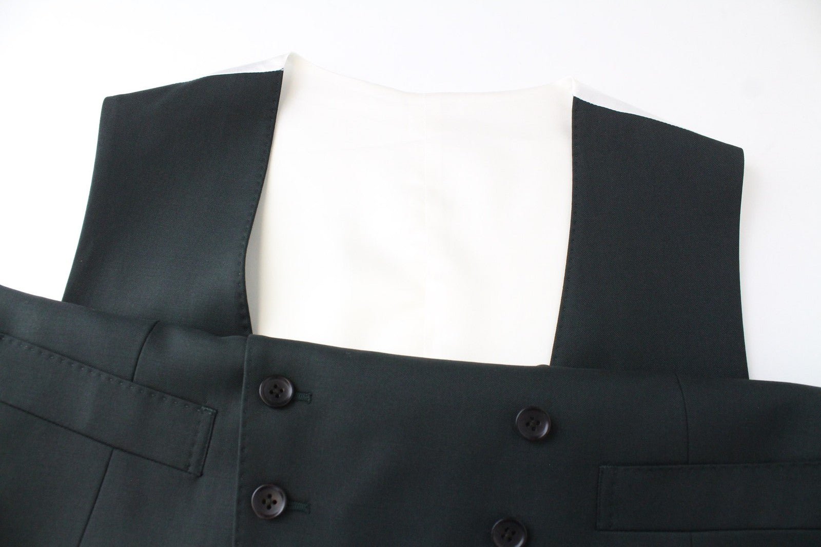 Used. Discoloration spot on the waistcoat. Pulled thread on the right leg. Please see added photos.