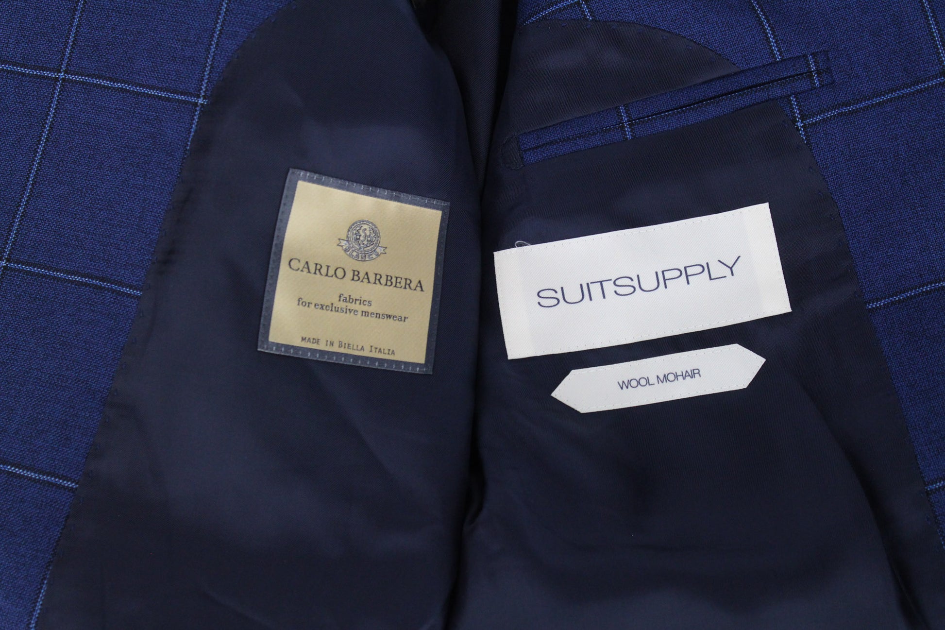 SUITSUPPLY Lazio Men's Suit UK38R Blue Windowpane Wool Mohair 2-Piece Slim
