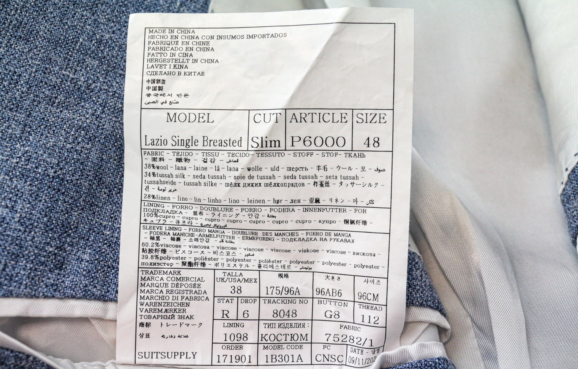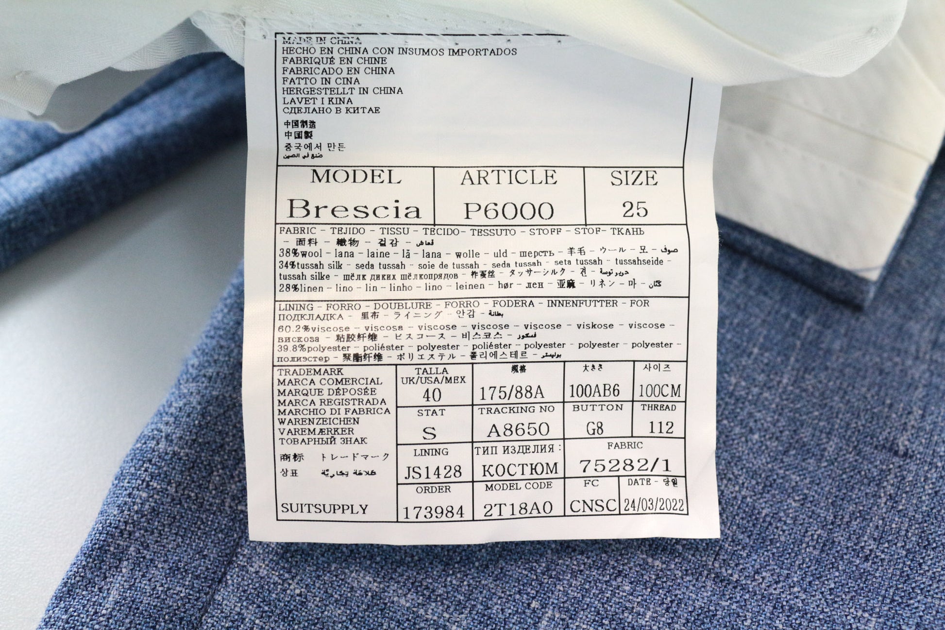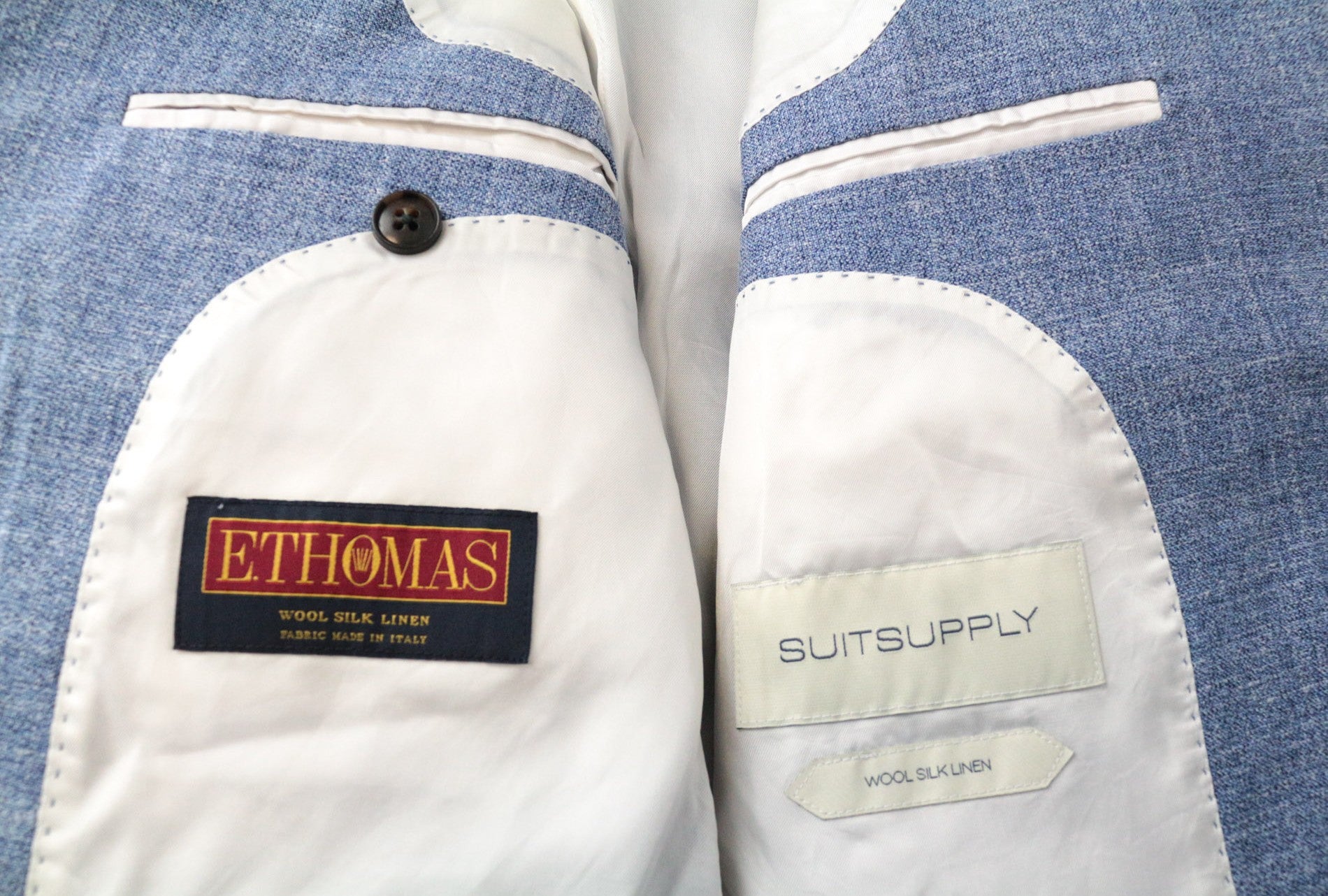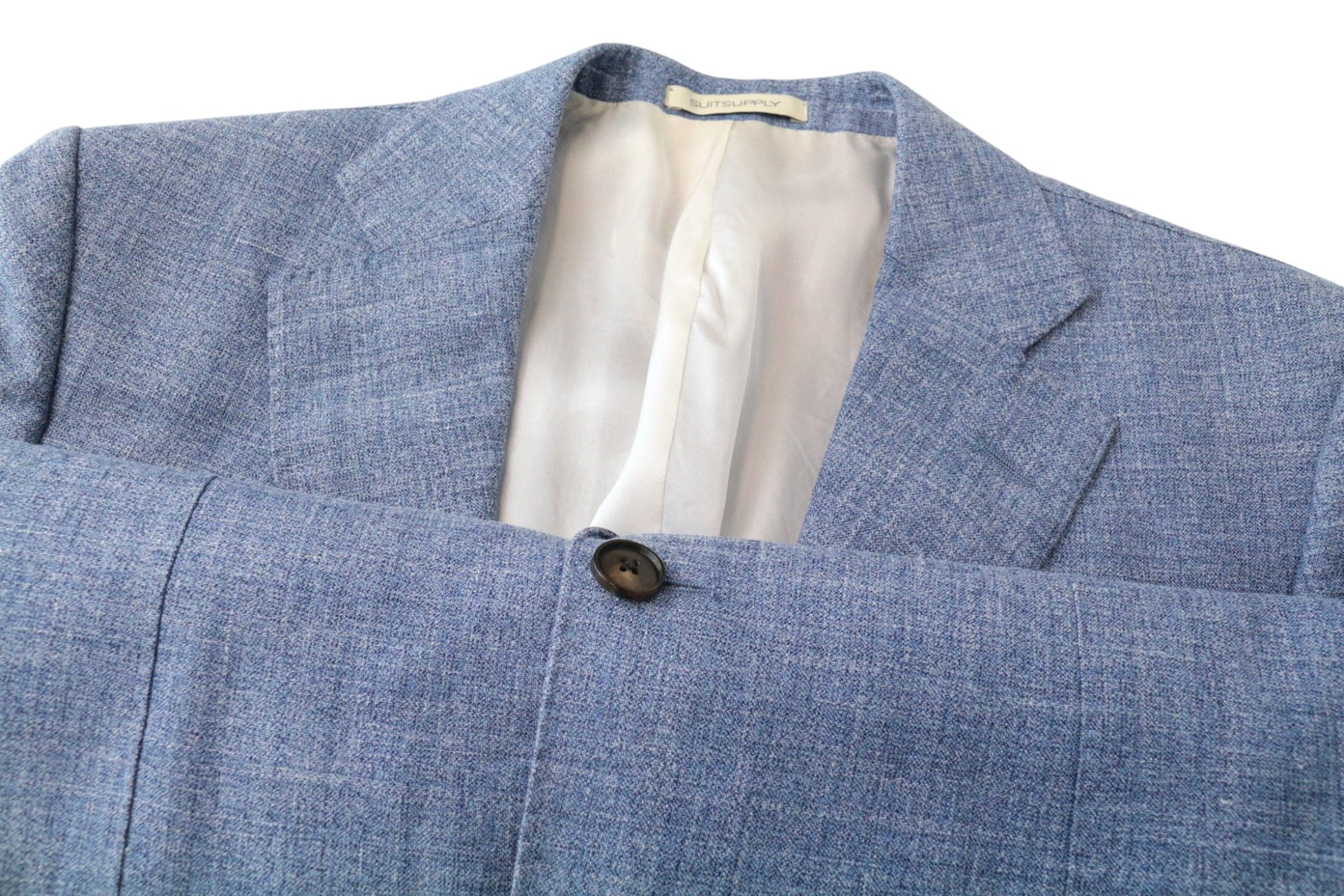 SUITSUPPLY Lazio Men's Suit UK38R Slim Blue Wool Silk Linen Classic 2-Piece