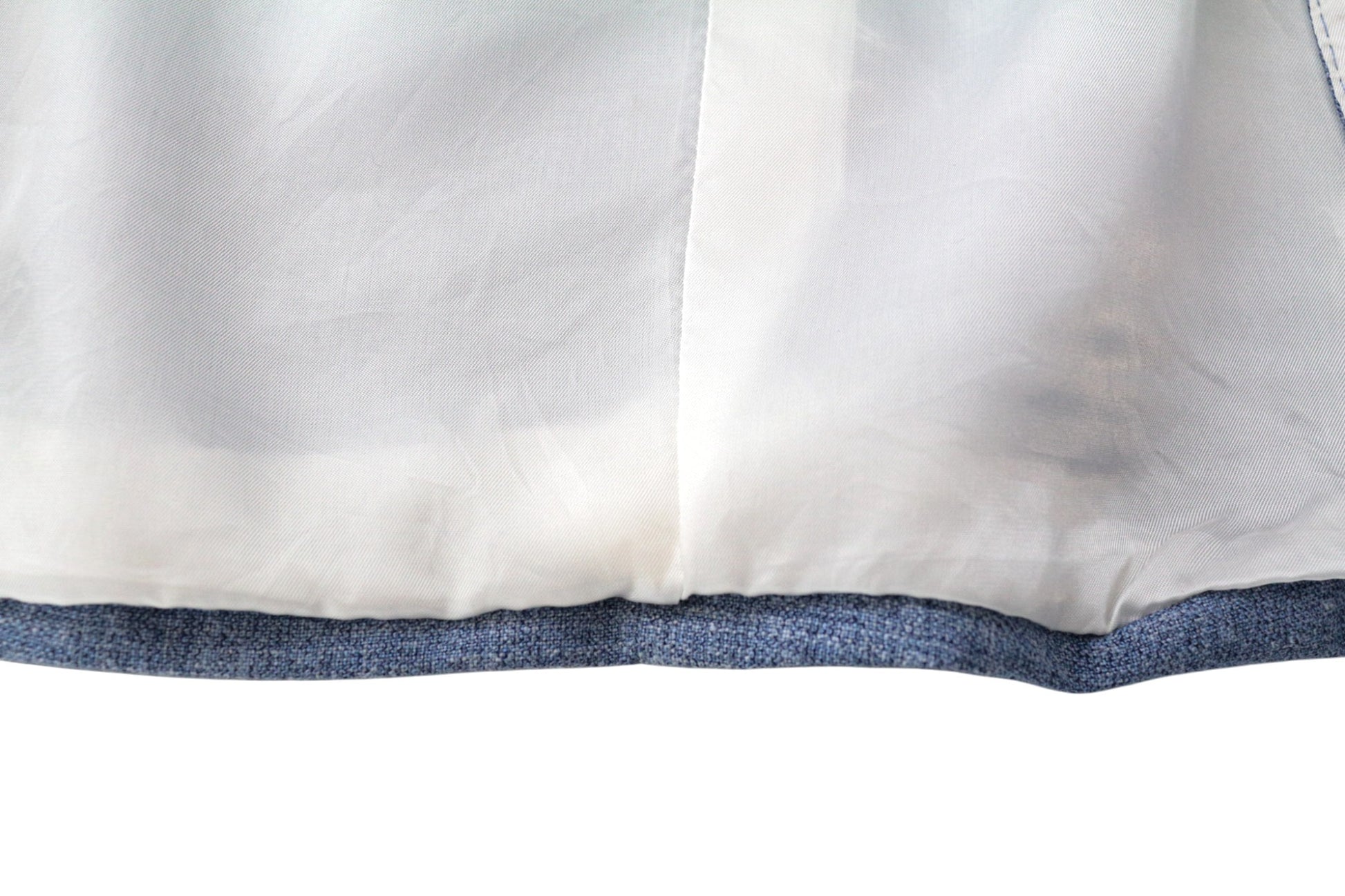 Used. Mended hems and sleeves, tear in the blazer's lining. Stained left pocket's lining. Please see added photos.