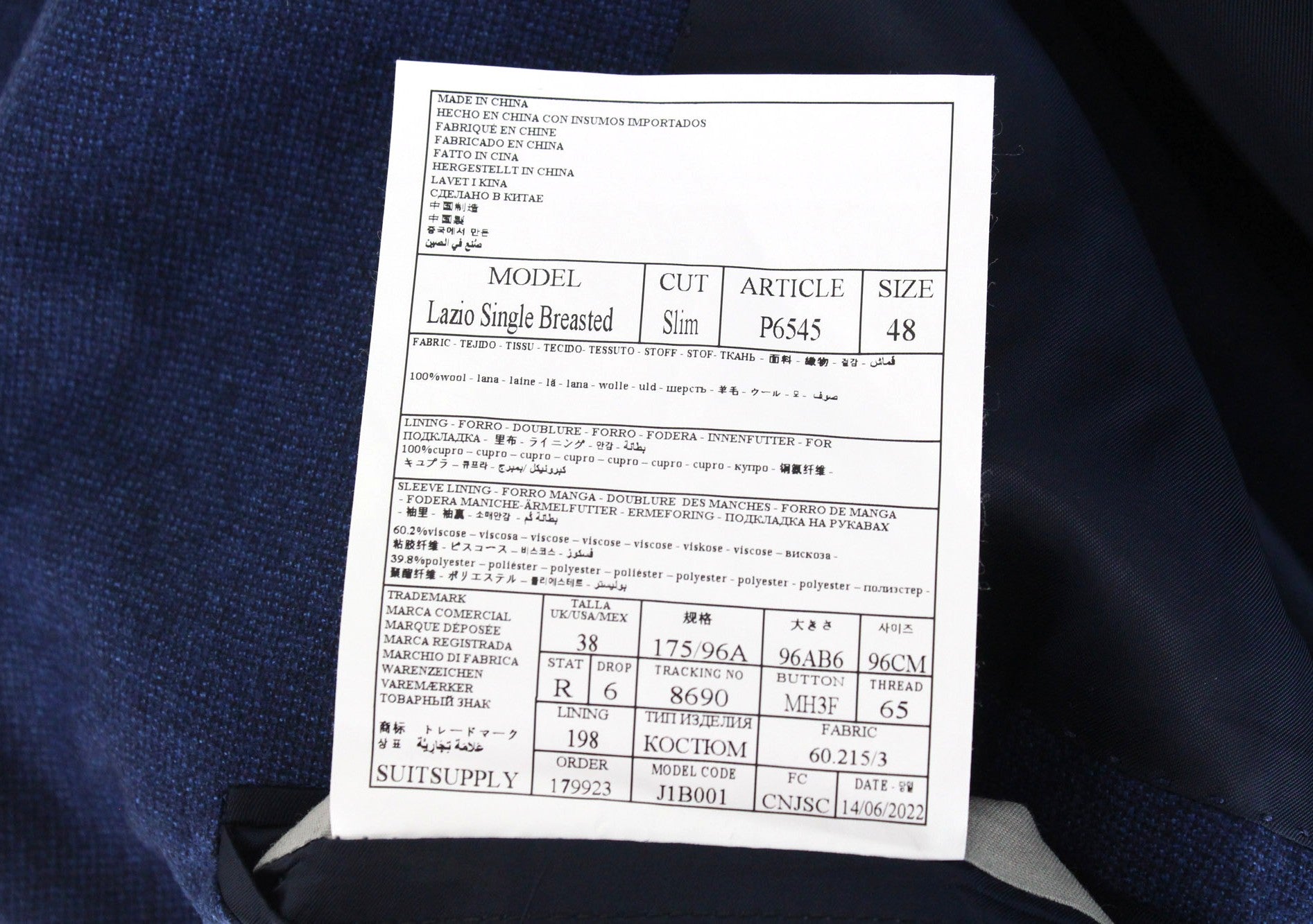 SUITSUPPLY Lazio Men's Suit UK38R Super 120s Blue Wool Slim 2-Piece Fit