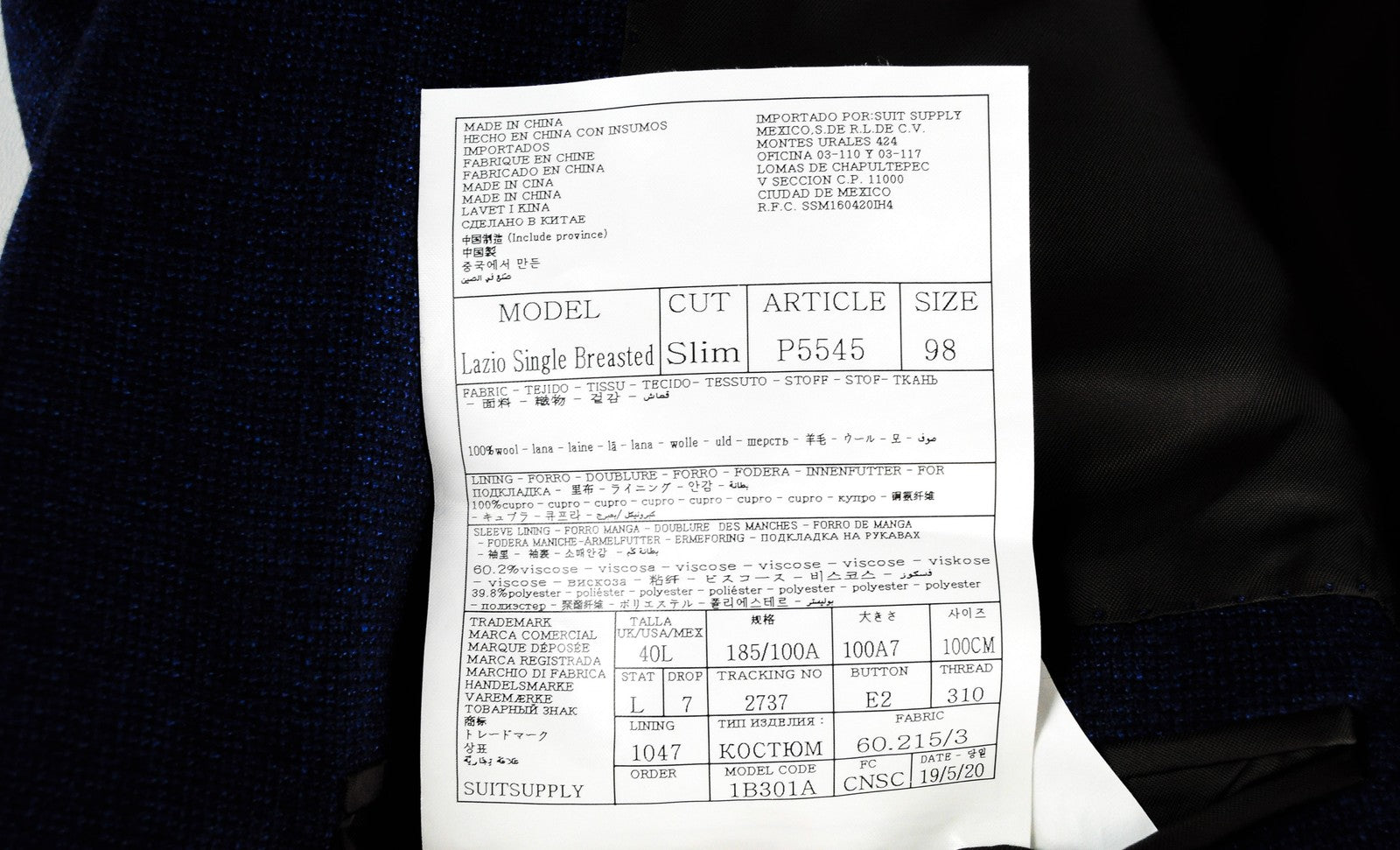 SUITSUPPLY Lazio Men's Suit UK40L Woolen Slim Cut Woven Melange 2-Piece Classic