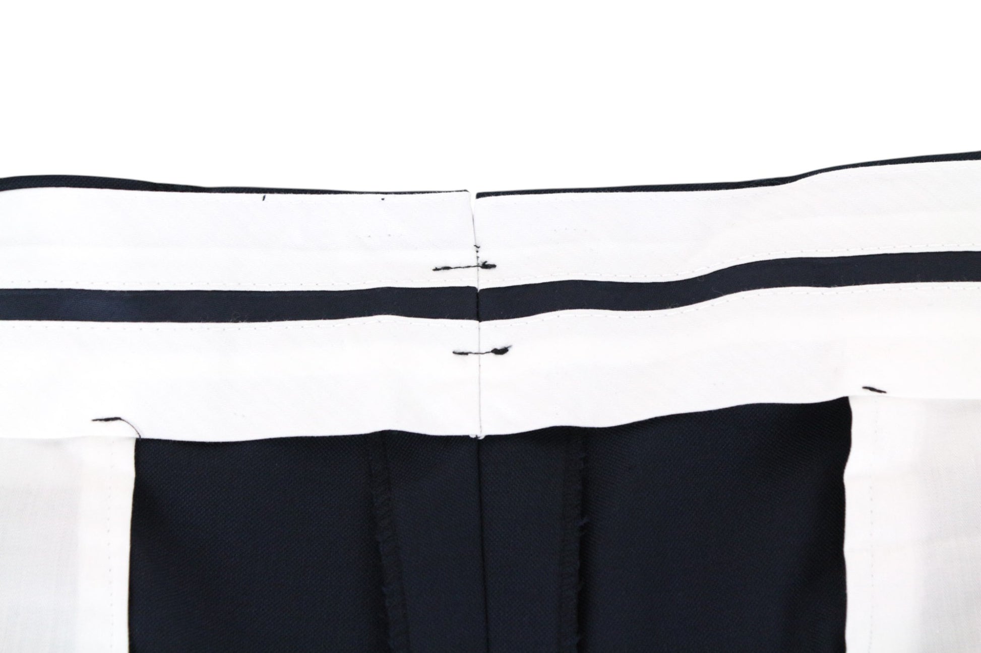 Used. Mended hems, waistline and inner trousers' lining around the crotch area. Please see added photos.
