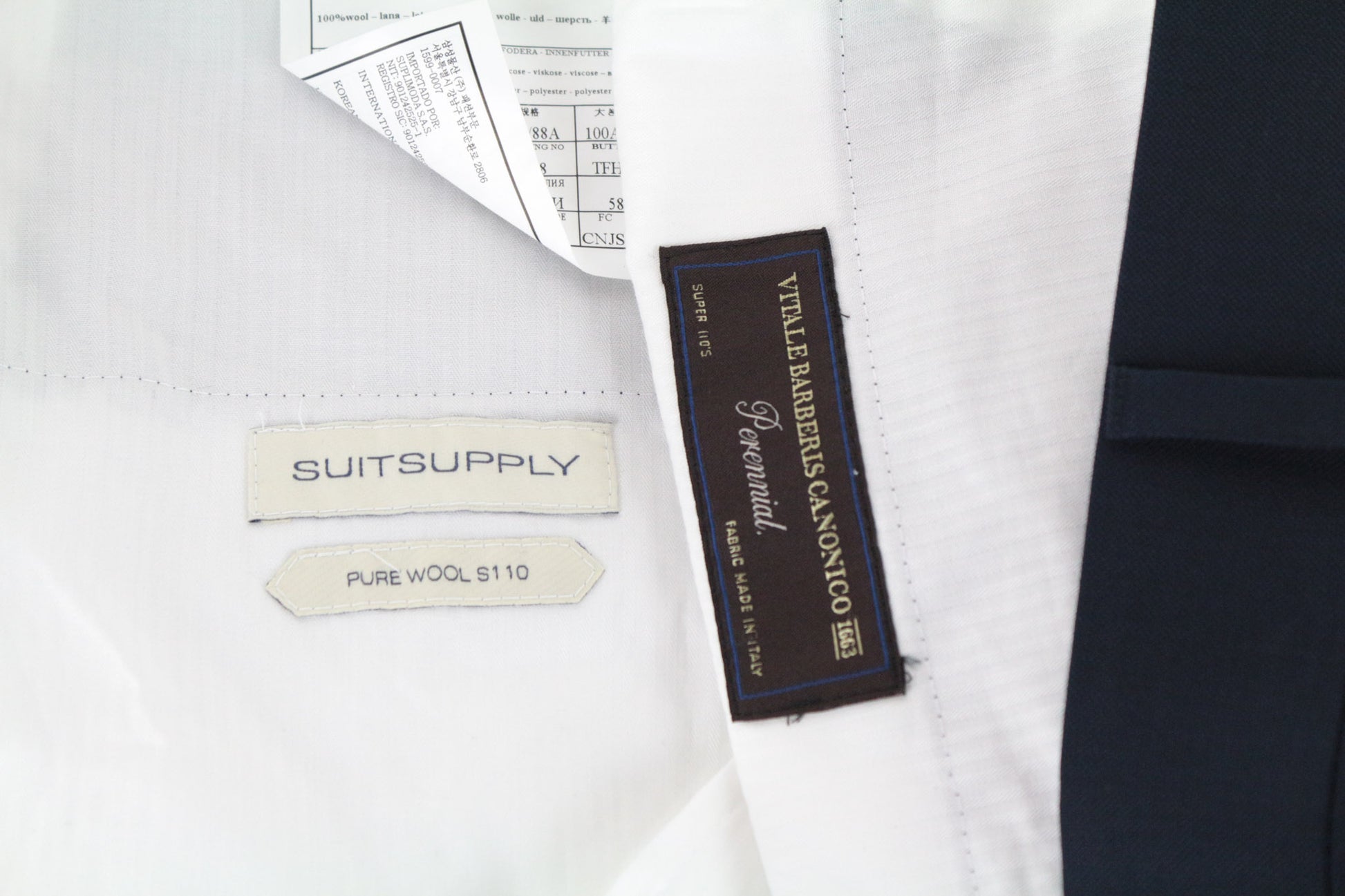 SUITSUPPLY Lazio Men's Suit UK40R Blue Super 110's Wool Slim Unlined 2 Pc