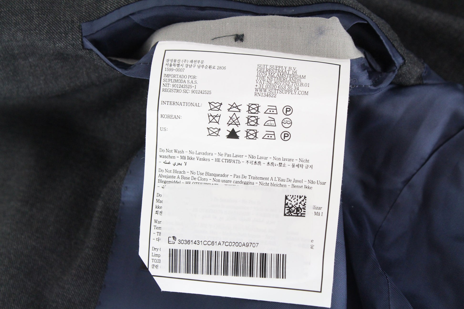 SUITSUPPLY Lazio Men's Suit UK44S Grey Wool S110s Slim Sharkskin 2-Piece