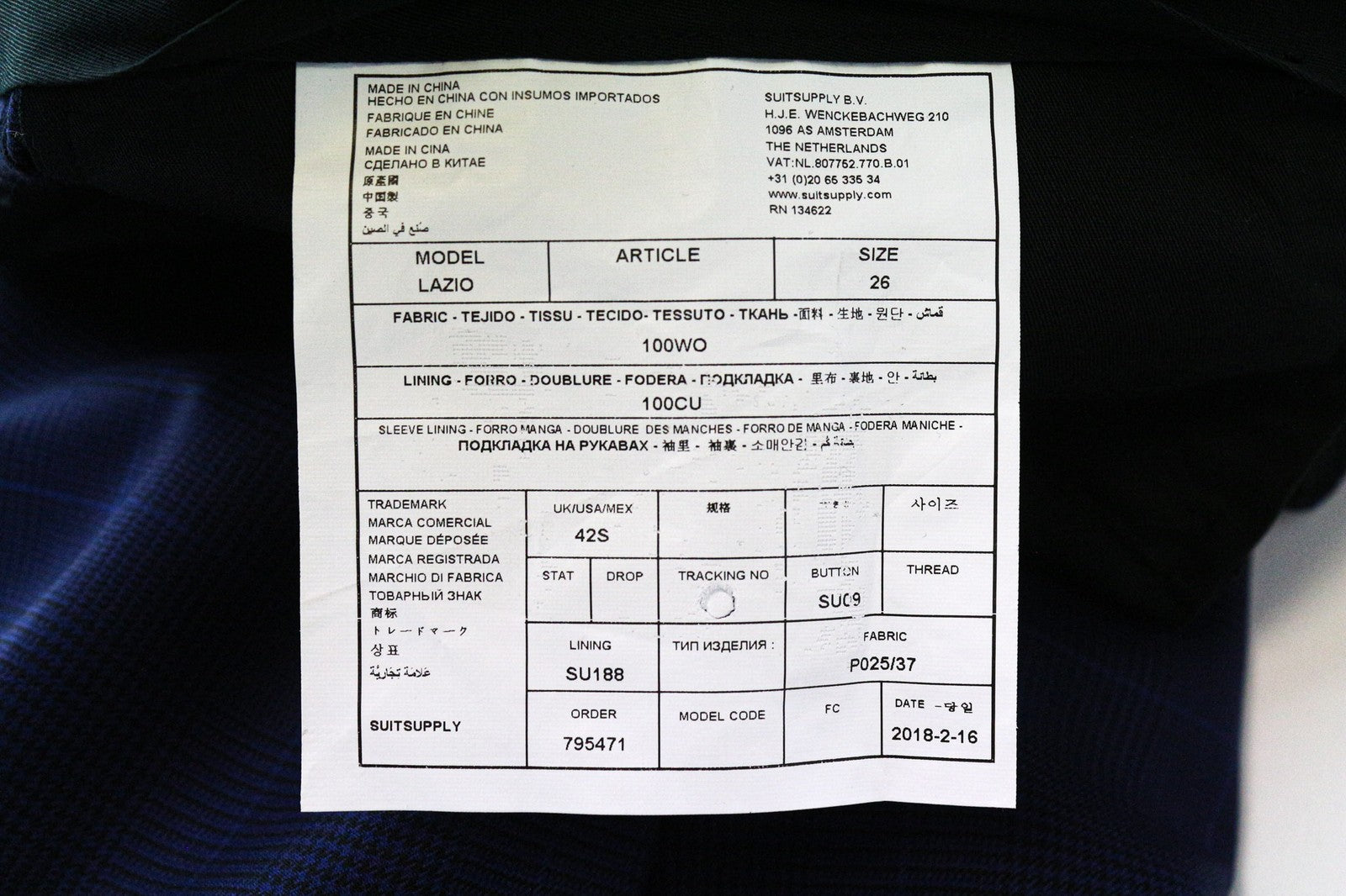 SUITSUPPLY Lazio vyriškos kelnės UK42S mėlynos vilnos languotos klostuotos elegantiškos iškirptės