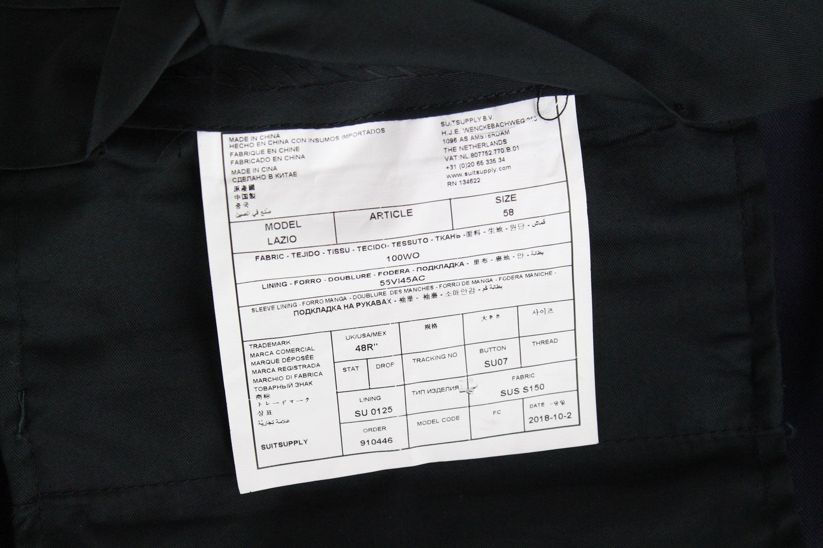 SUITSUPPLY Lazio vyriškos kelnės UK48R plonos vilnonės drobės mėlynos plokščio priekio oficialios