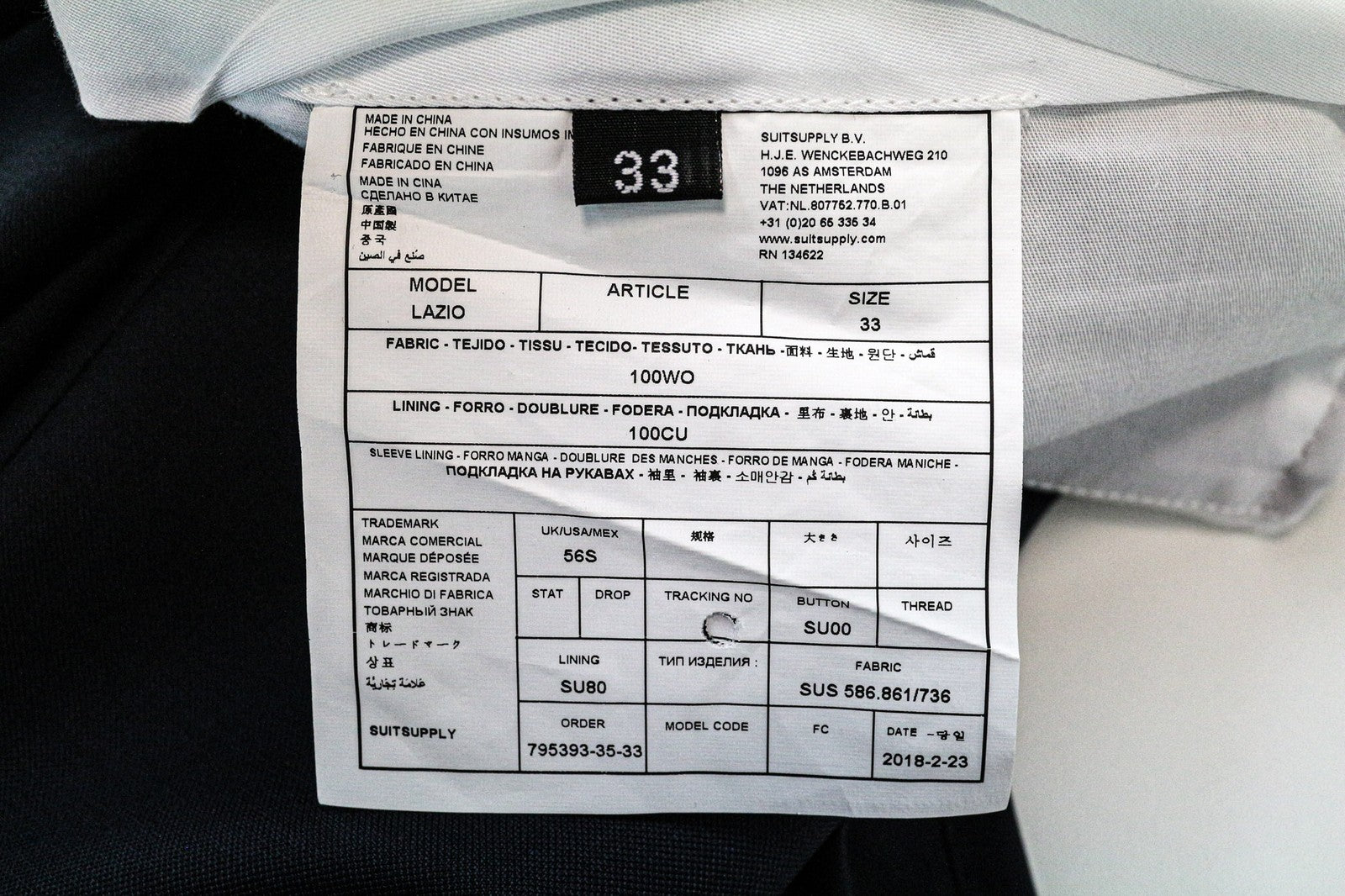 SUITSUPPLY Lazio Men's Trousers UK56S Blue Slim Melange Wool Classic Flat-Front