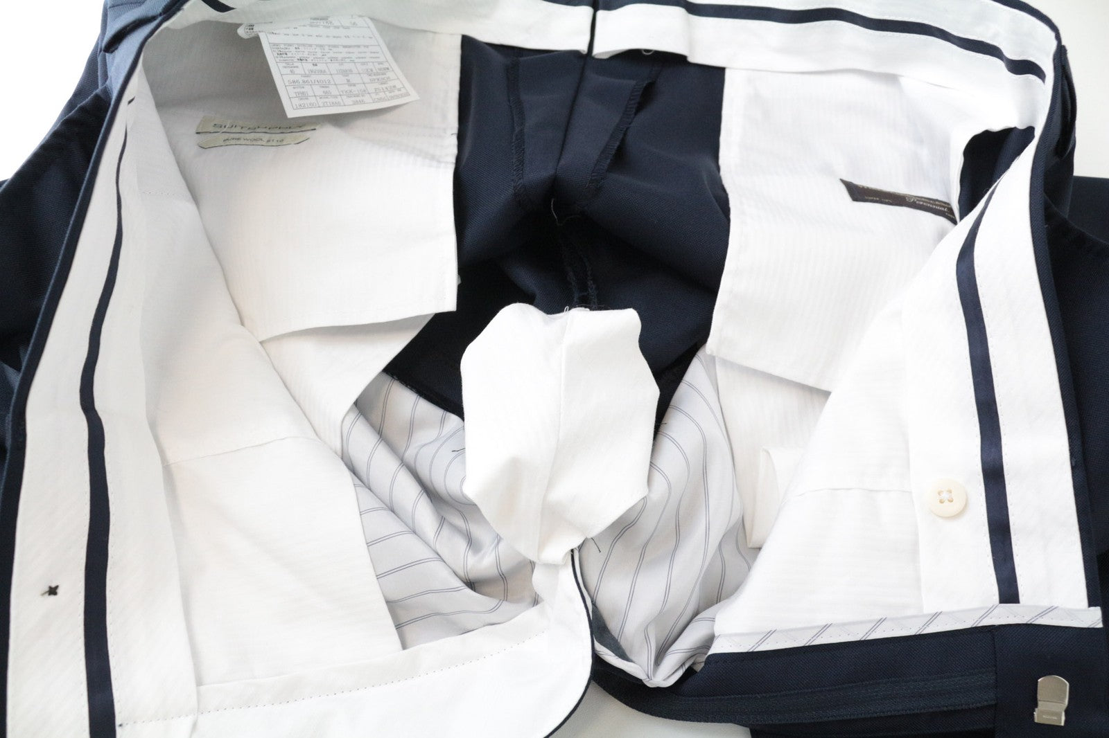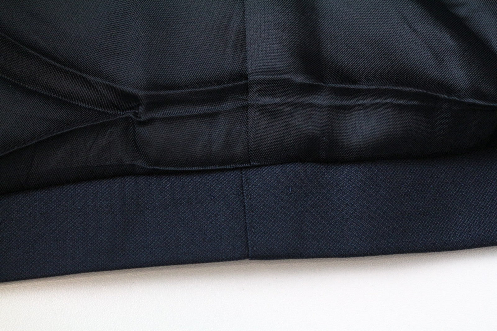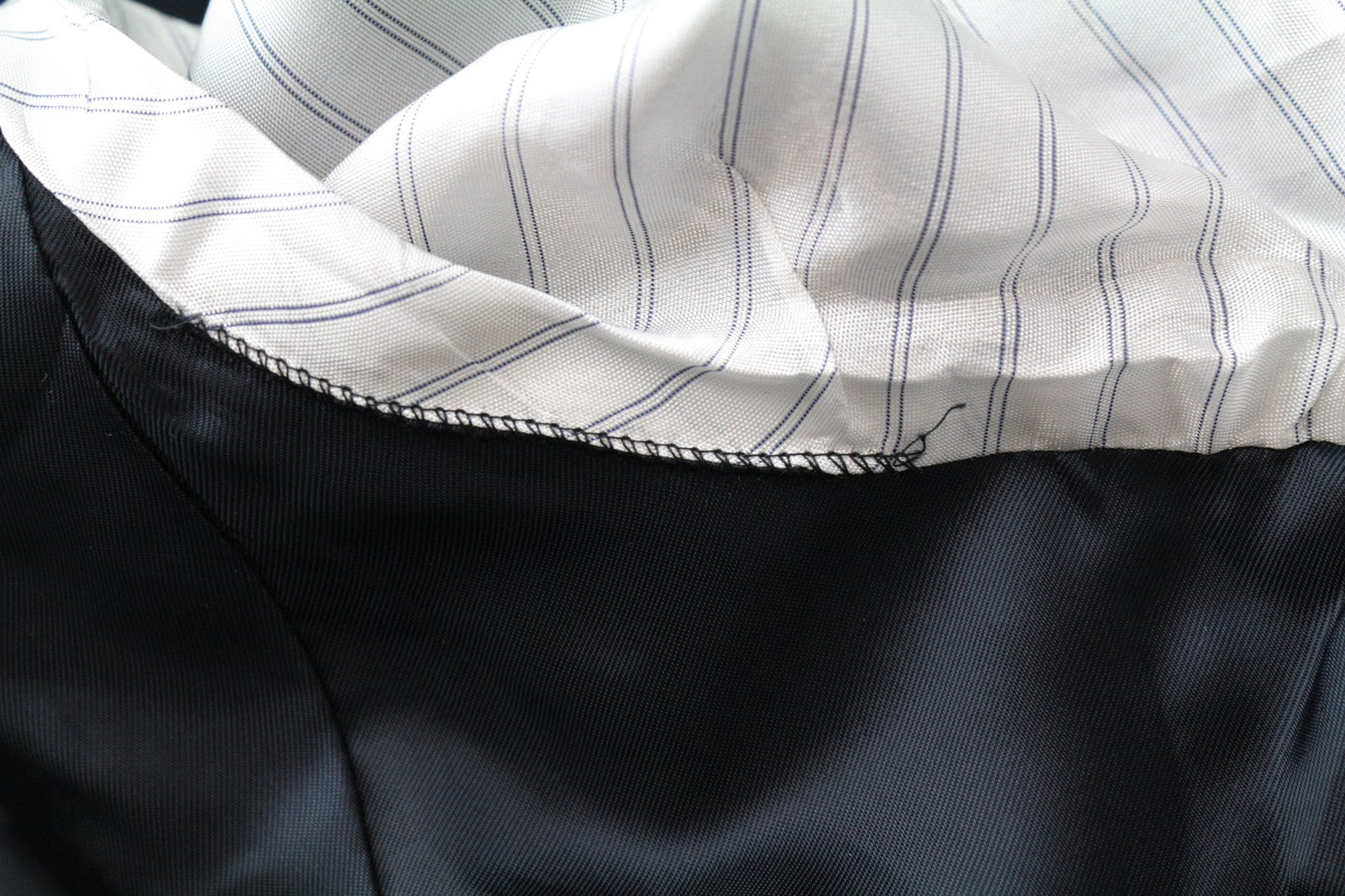 Used. Mended inner trousers' lining around the crotch area. Tear in the lapel and lining. Please see added photos.