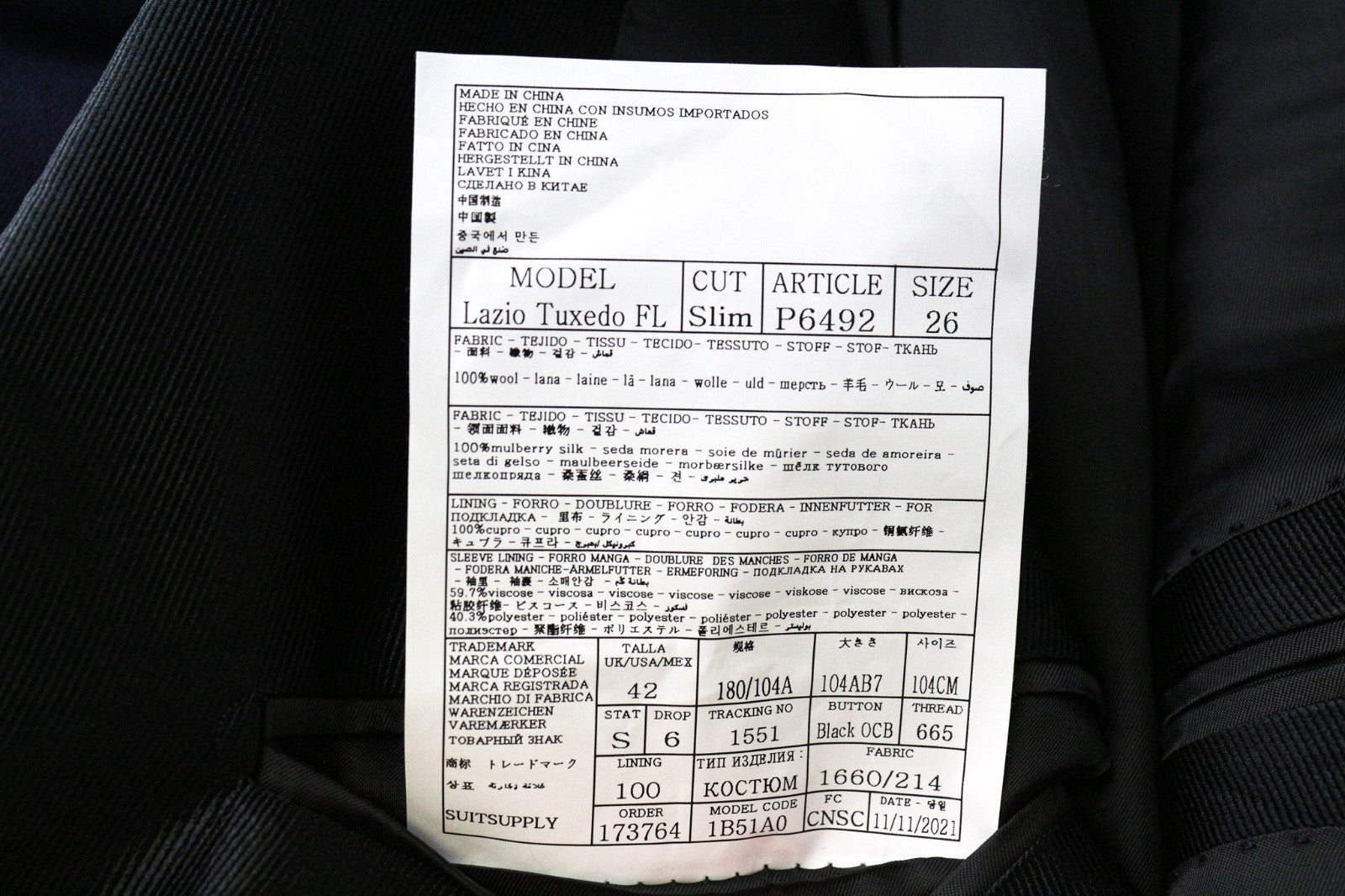 SUITSUPPLY Lazio Tuxedo Men's Suit UK42S Blue Wool Super 130's Slim 3 Piece