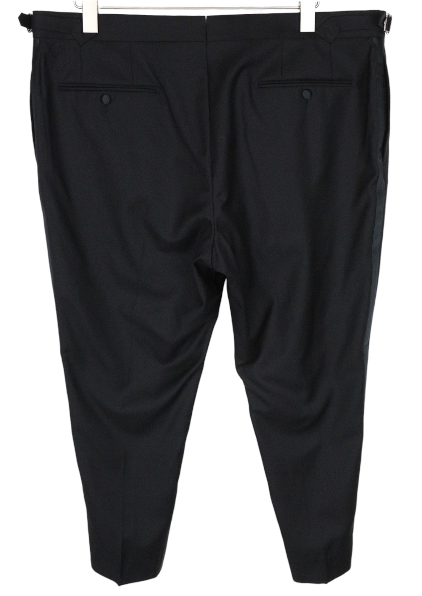 Used. Mended hems and inner trousers' lining around the crotch area. Pulled thread on the lapel. Pay attention that trousers are shorter than usual. Please see added photos.