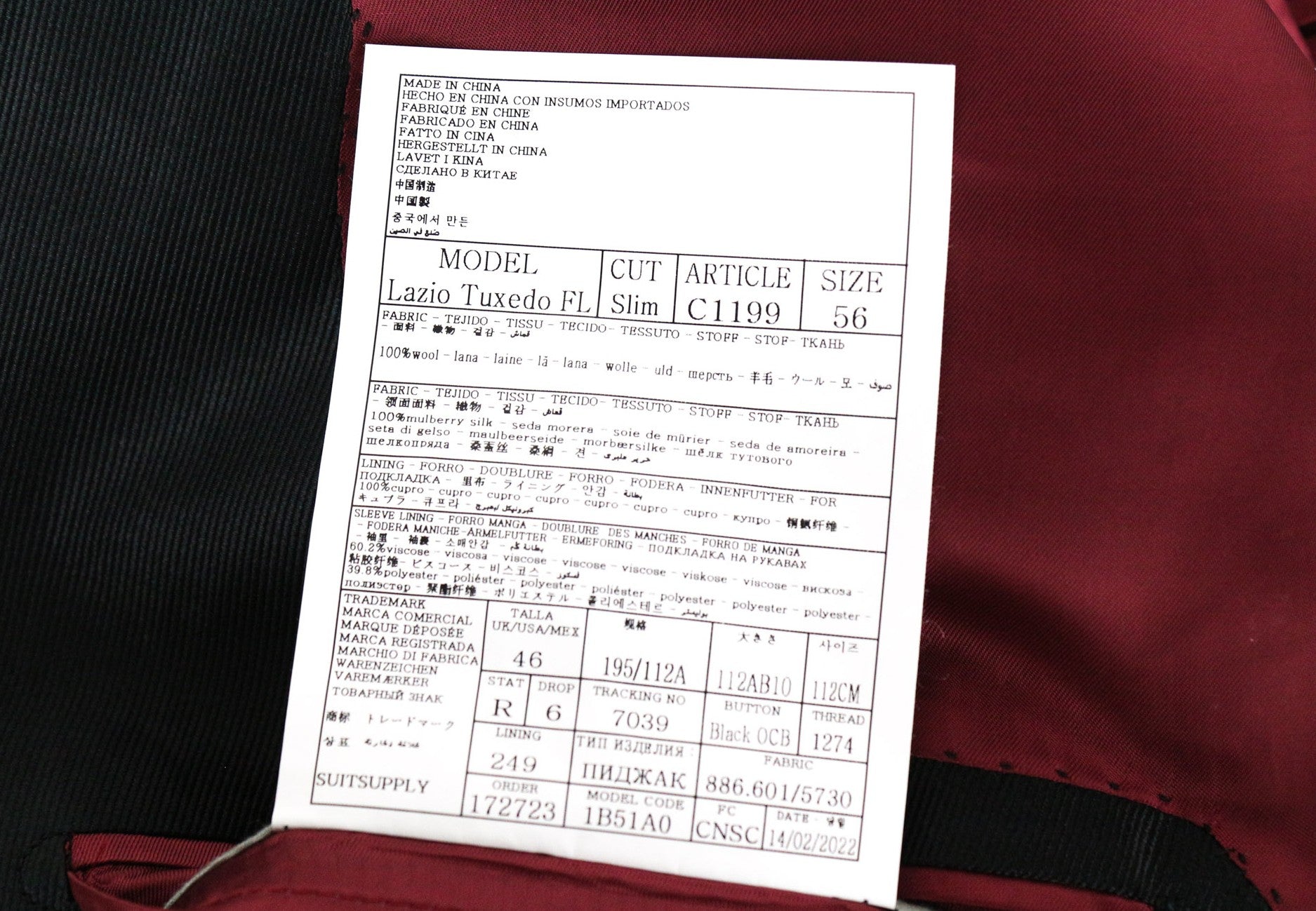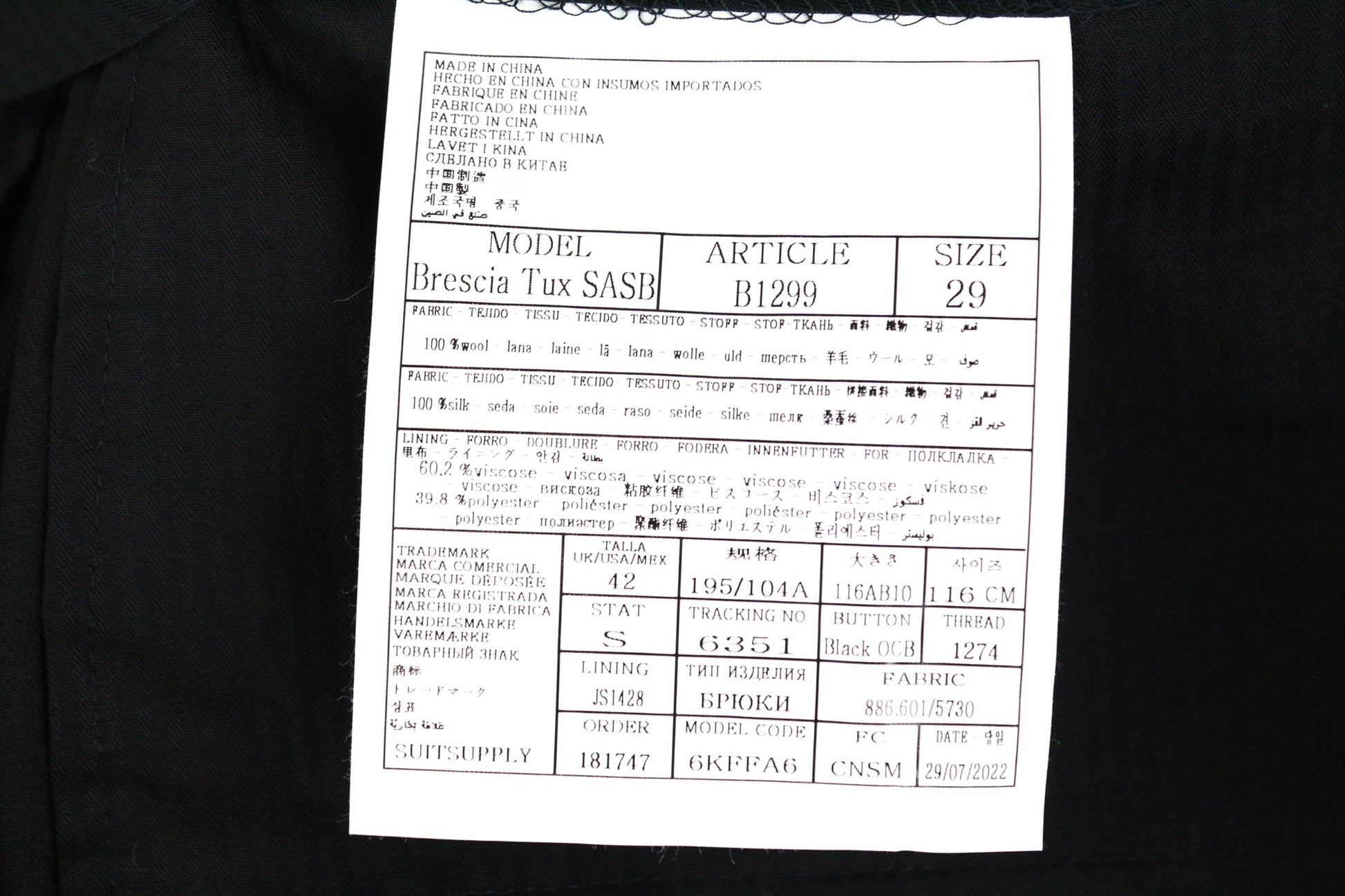 SUITSUPPLY Lazio Tuxedo Men's Suit UK46R Black Velvet Wool S110 Slim 3 Pc
