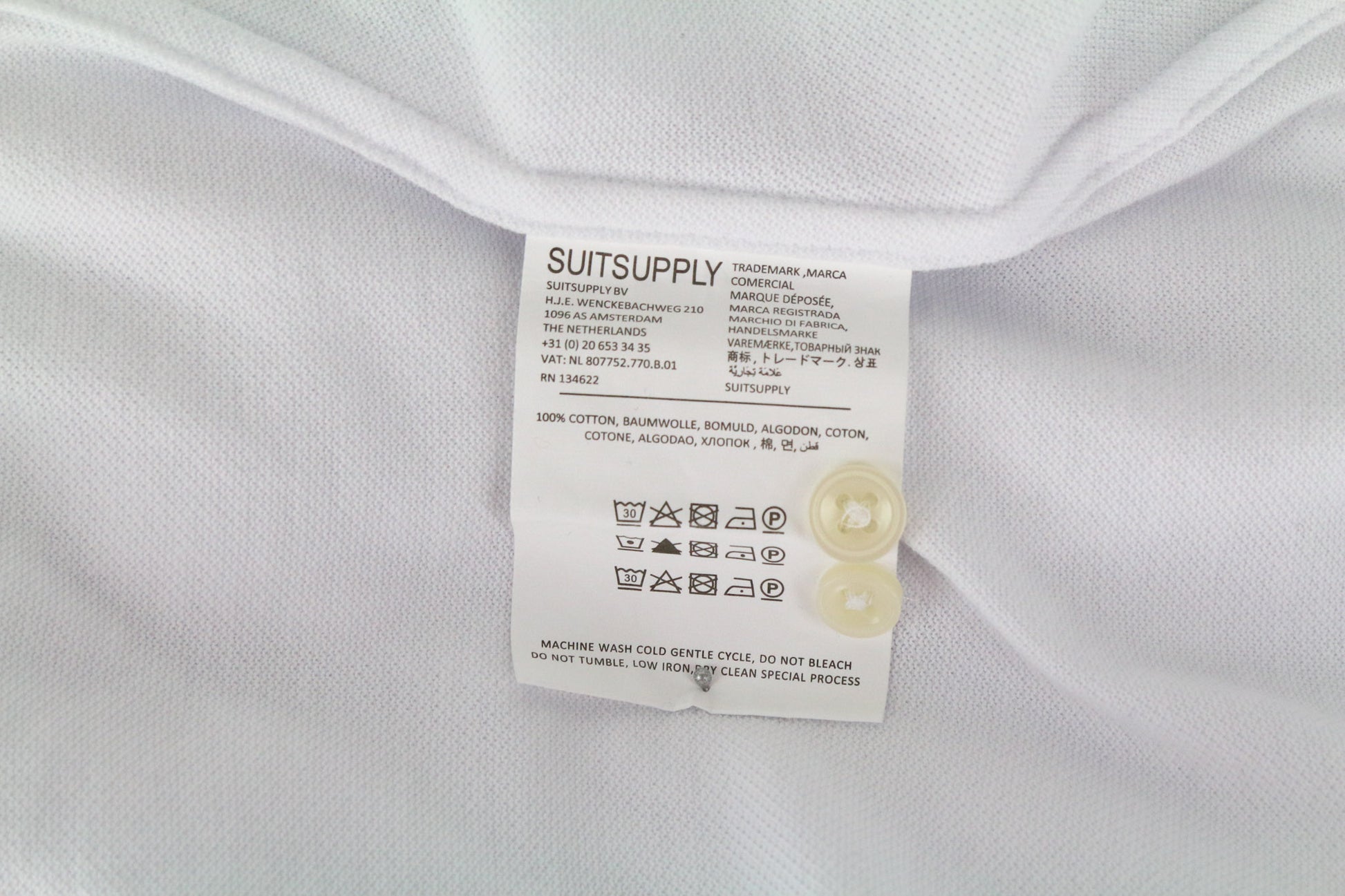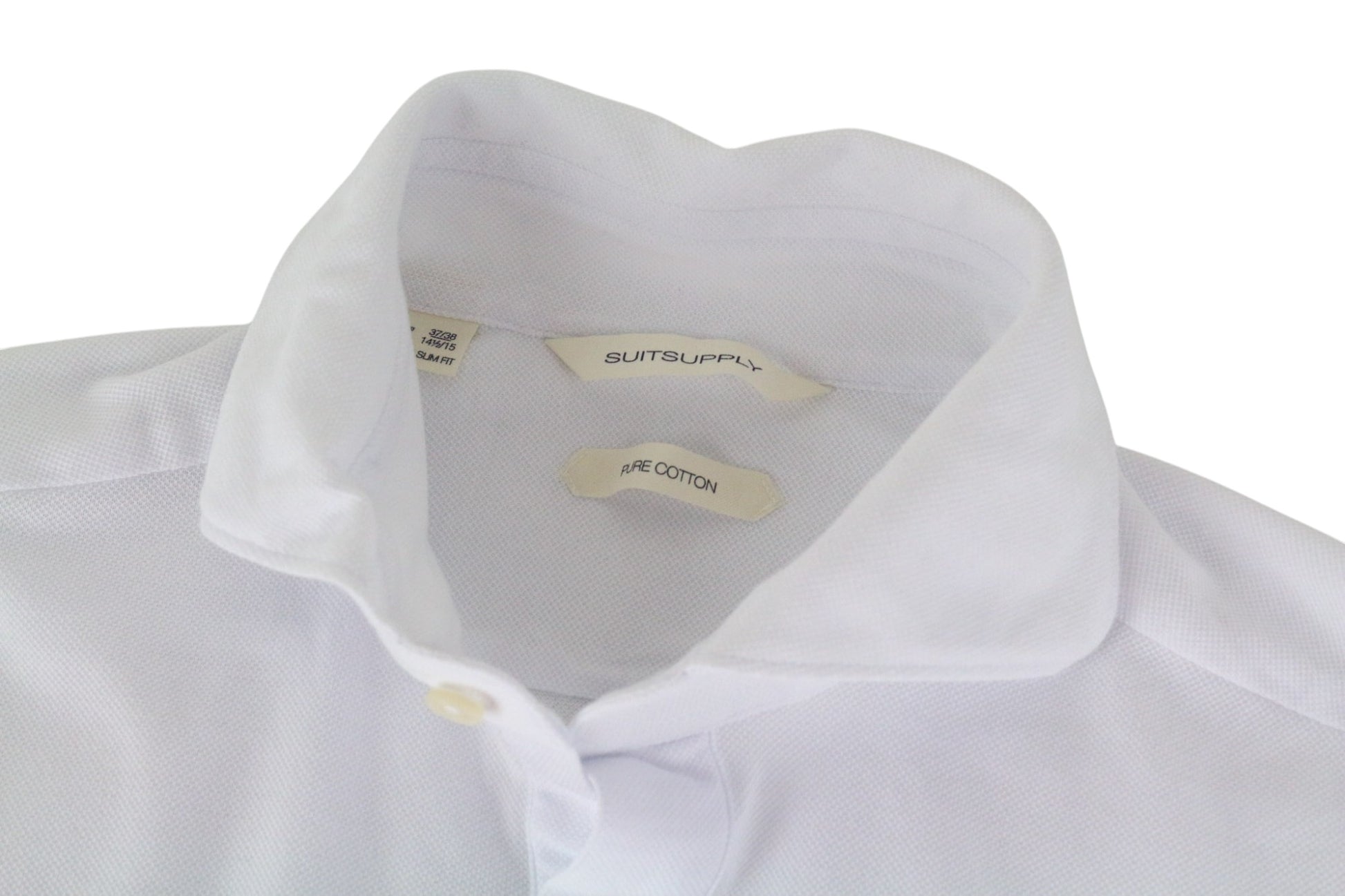 SUITSUPPLY vyriški marškinėliai 37/38/14 1/2/15 ypač ploni medvilniniai polo marškinėliai, balti ilgomis rankovėmis