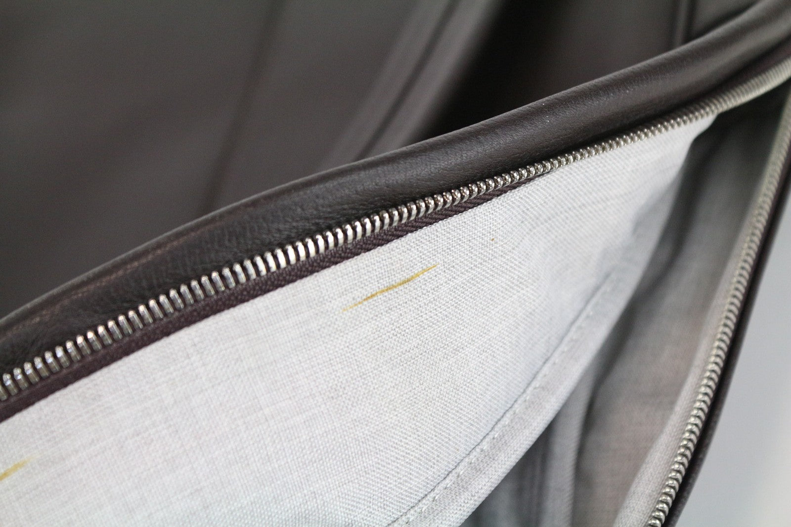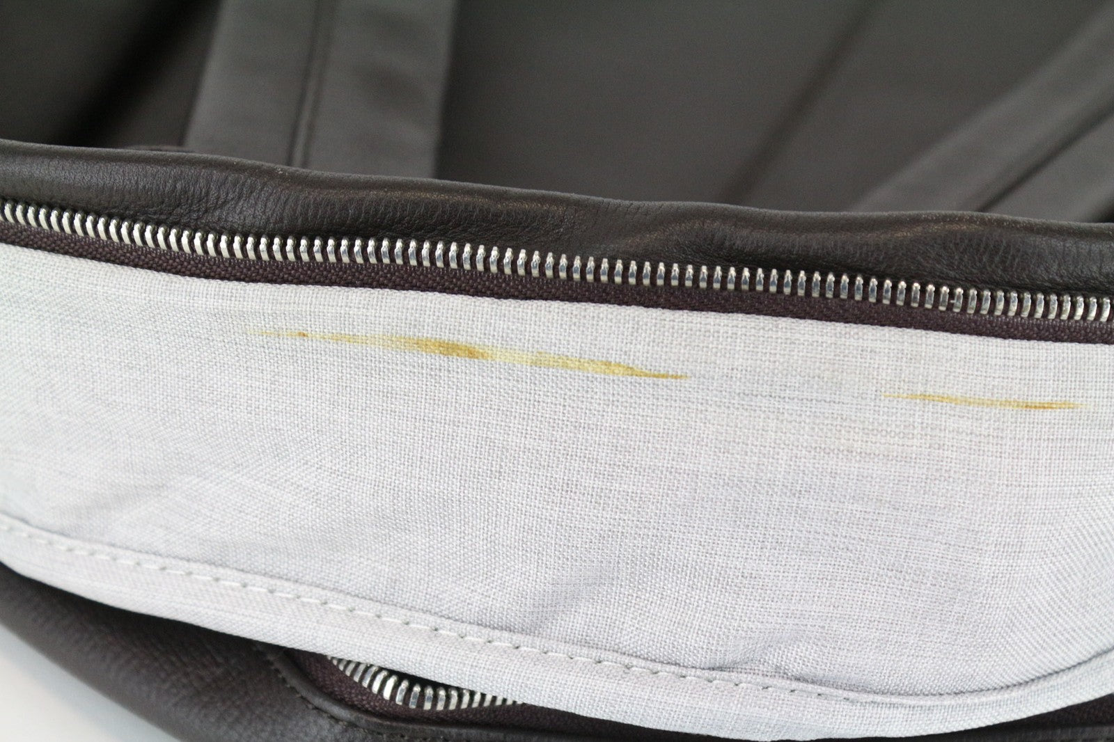 Būklė: Naudota. Dėmė aplink užtrauktuką. Pagrindinis užtrauktukas neveikia taip sklandžiai, kaip turėtų. Nutrynęs odinis išorinio apvalkalo ir kuprinės rankenos paviršius. Žr. pridėtas nuotraukas.