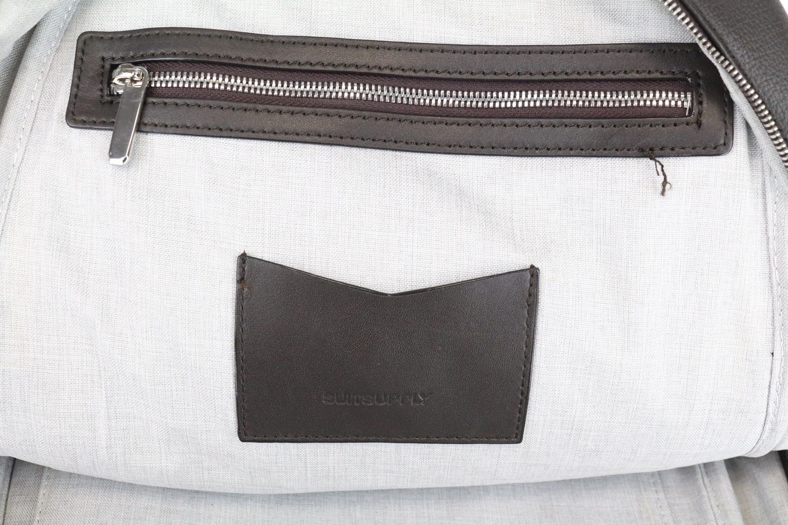 SUITSUPPLY vyriška kuprinė OS tamsiai ruda veršiuko oda su reguliuojamais dirželiais