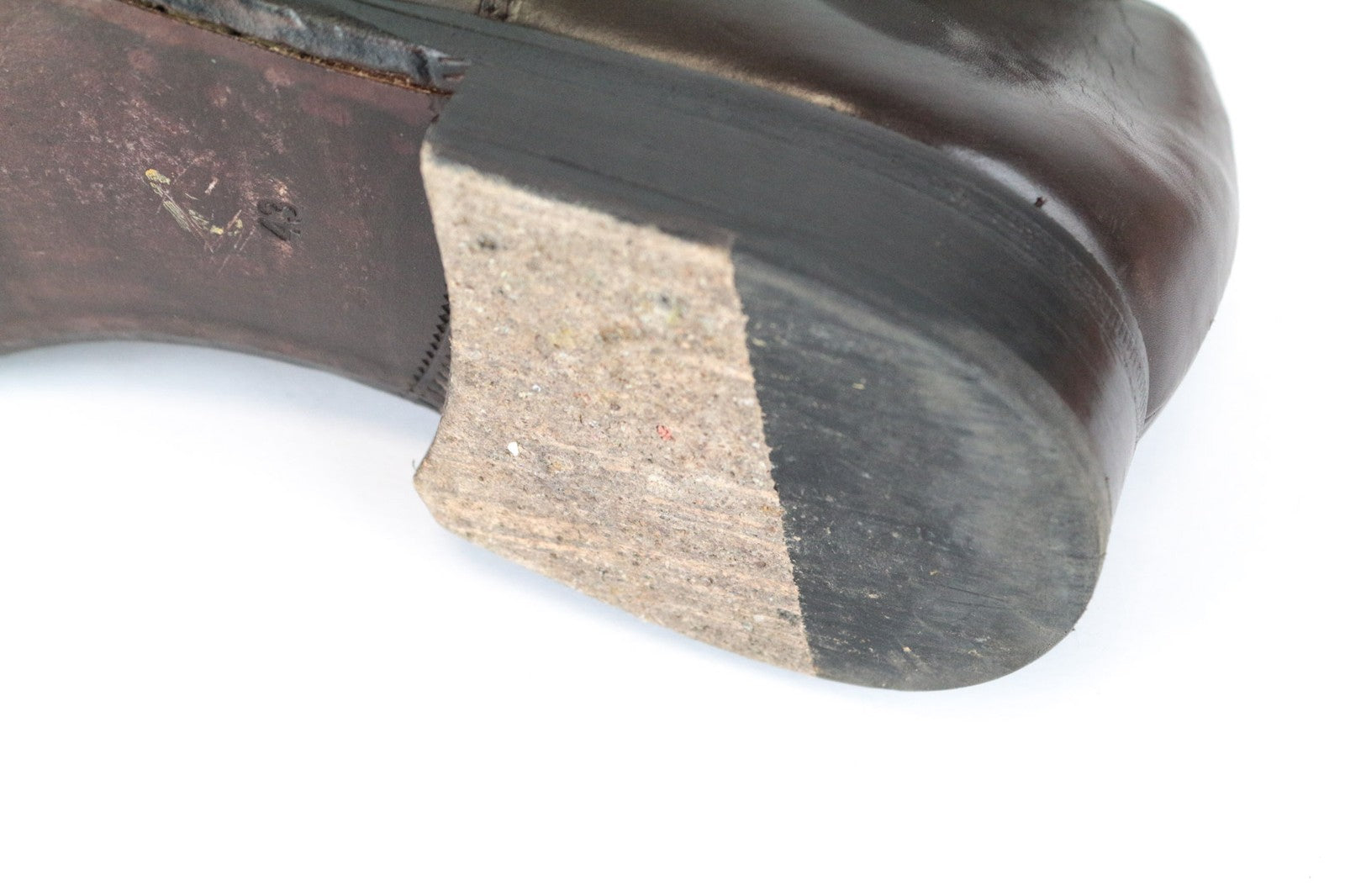 Naudotas. Turi raukšlių, įbrėžimų ir įspaudų. Nutrynę, subraižyti ir dėmėti padai. Žr. pridėtas nuotraukas.