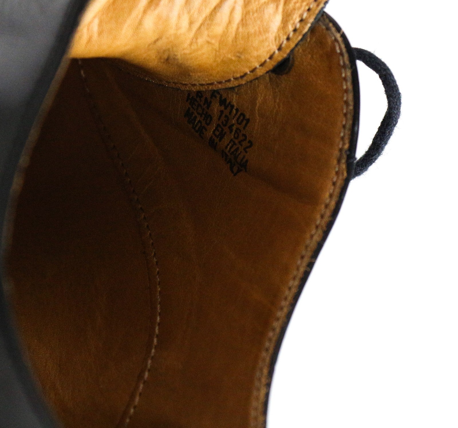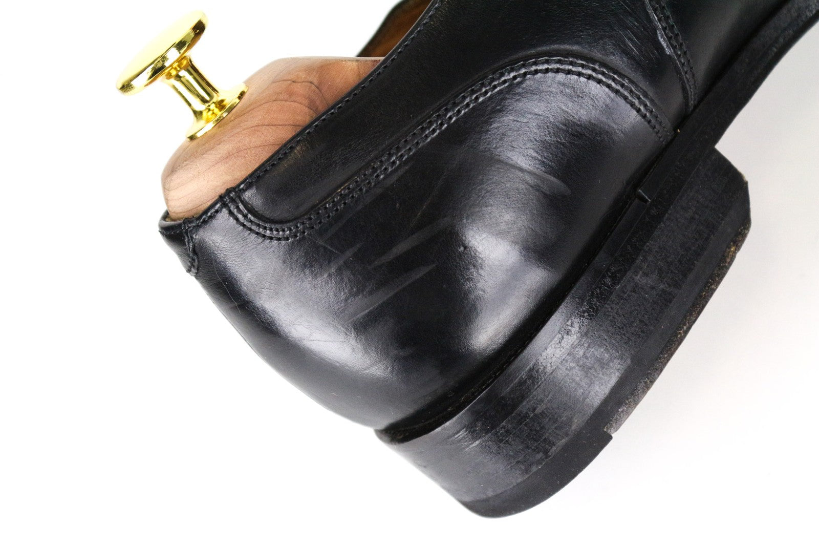 Used. Rubbed off soles. Has wrinkles and scratches. Missing right shoe's tongue. Please see added photos.