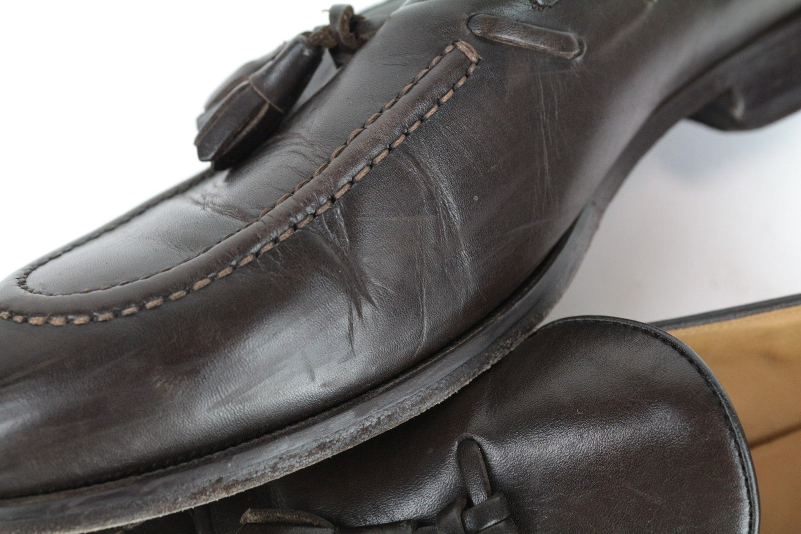 Naudotas. Nutrinti padai, susiraukšlėję. Subraižytas dešinysis batas ir trūksta šoninės juostos. Žr. pridėtas nuotraukas.