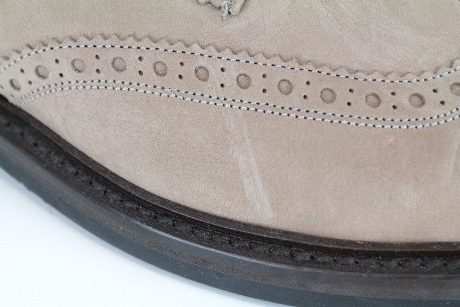 Naudotas. Maži įbrėžimai, įspaudai ir nusitrynusi oda. Mažos skylutės dešiniojo bato pade. Žr. pridėtas nuotraukas.