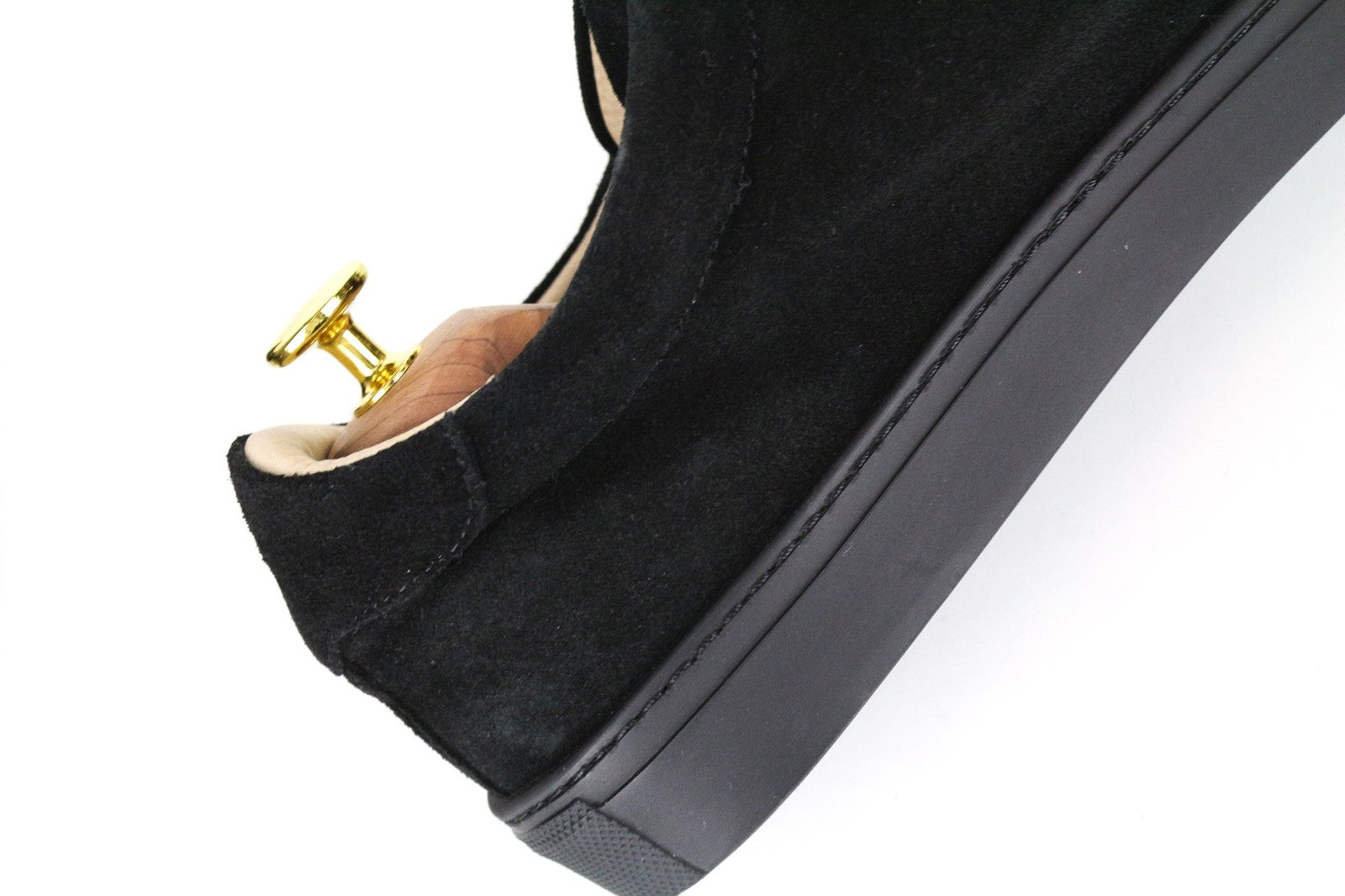 „SUITSUPPLY“ vyriški juodi zomšiniai sportbačiai su raišteliais, žema pakulne, laisvalaikio stiliaus, EU46, gatvės stilius