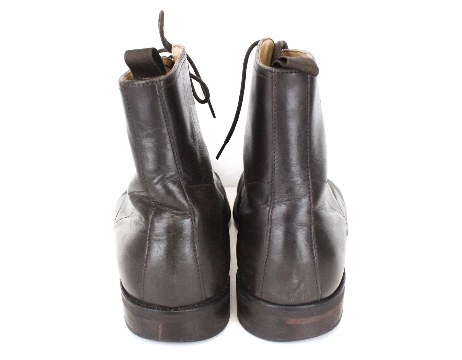 SUITSUPPLY vyriški tamsiai rudi, EU46 dydžio, odiniai, aukštakulniai bateliai su raišteliais, brogų raštu