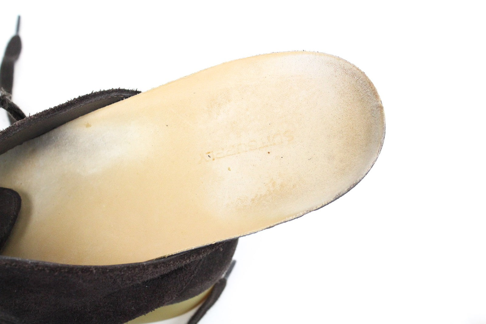 Būklė: Naudotas. Nutrintas zomšos odos viršus ir vidpadžiai. Nutrūkusi siūlė aplink kairiojo bato priekį. Nusidėvėję batų raišteliai. Žr. pridėtas nuotraukas.