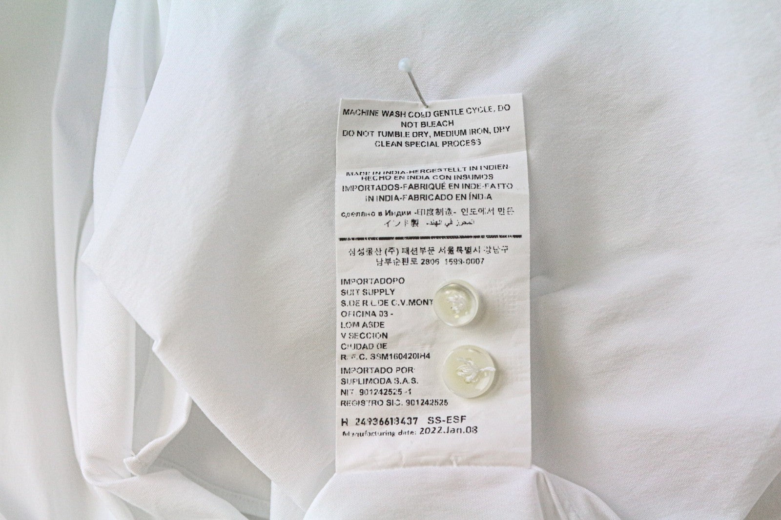 SUITSUPPLY Men's Formal Shirt ~2XS Extra Slim White Cotton Stretch Cutaway