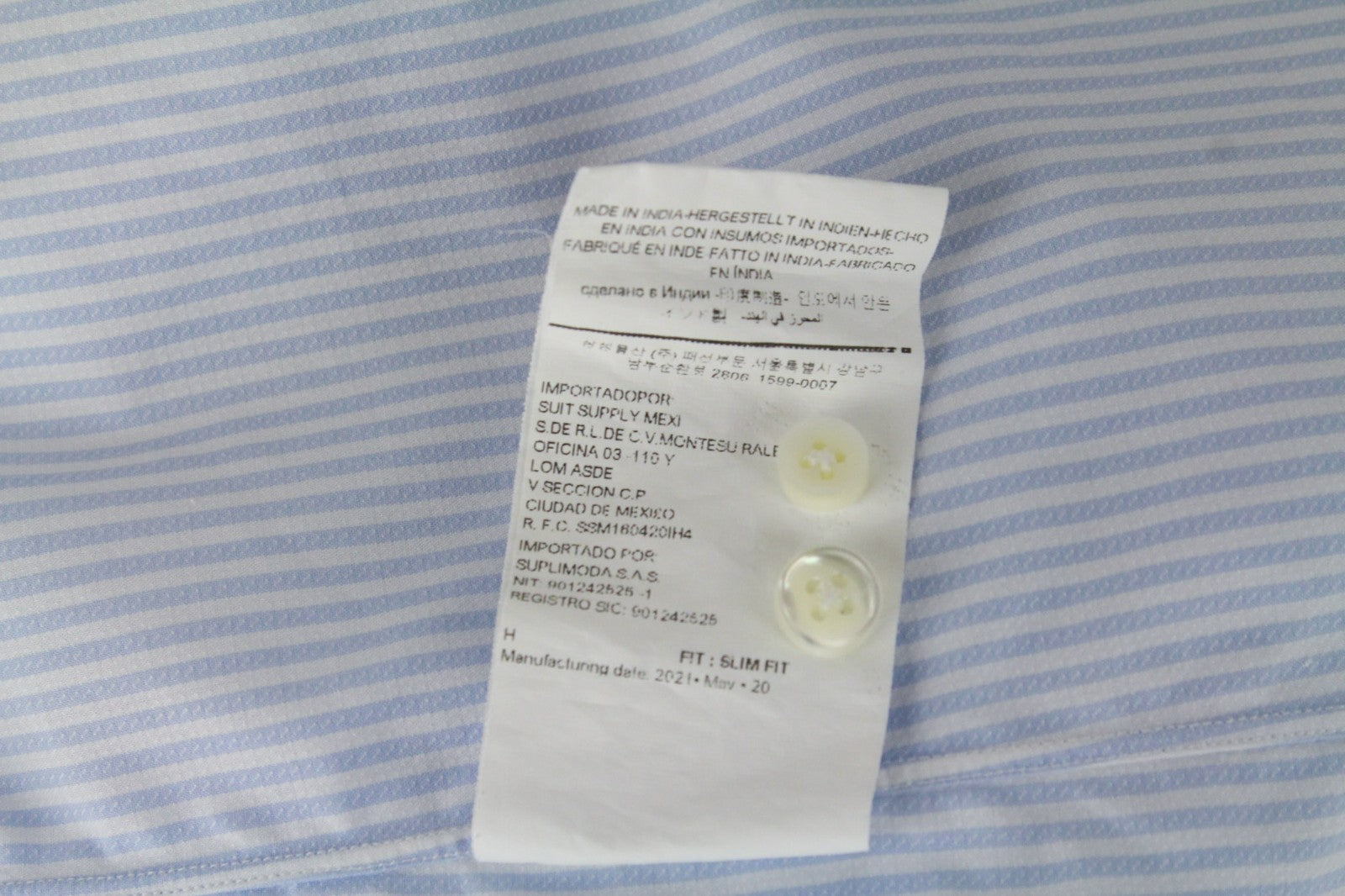 SUITSUPPLY Men's Formal Shirt 35/13 1/2 Light Blue Stripe Slim Cut Pure Cotton